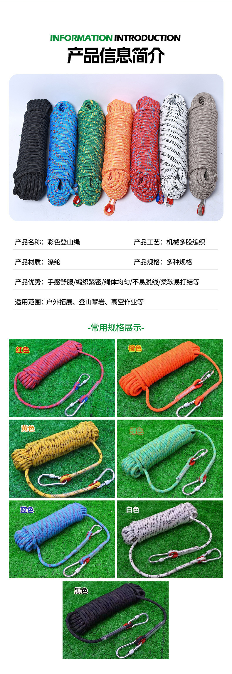등산 로프, 암벽 등반용 나일론 안전 로프, 등반 로프, 스피드 드롭 로프, 정적 로프, 등산 및 동굴 탐험 로프, 슬링 로프, 대형 로프