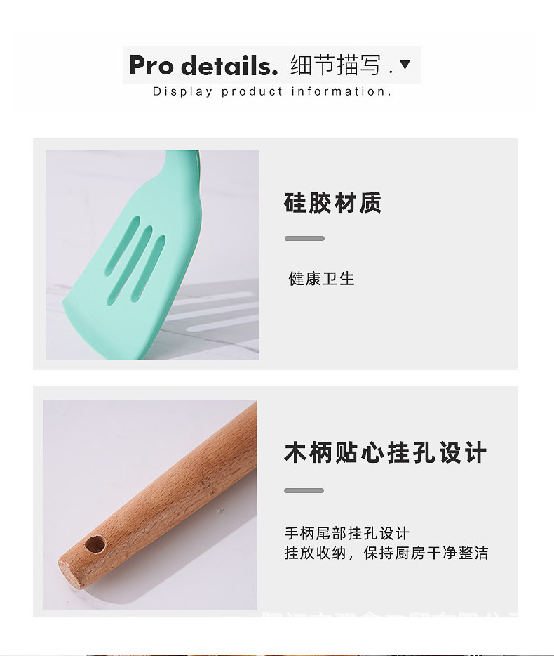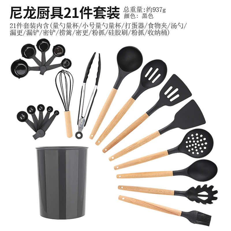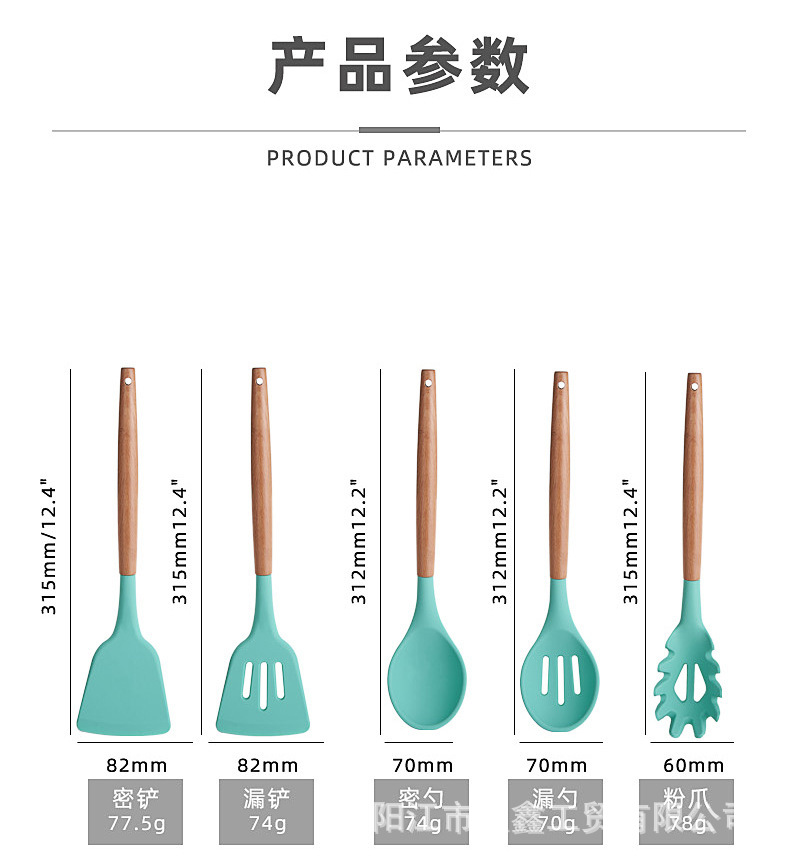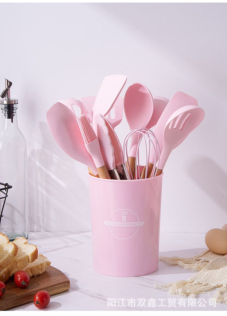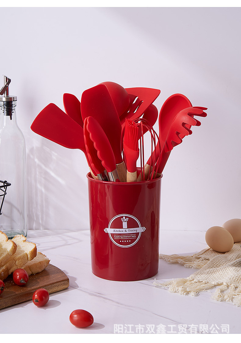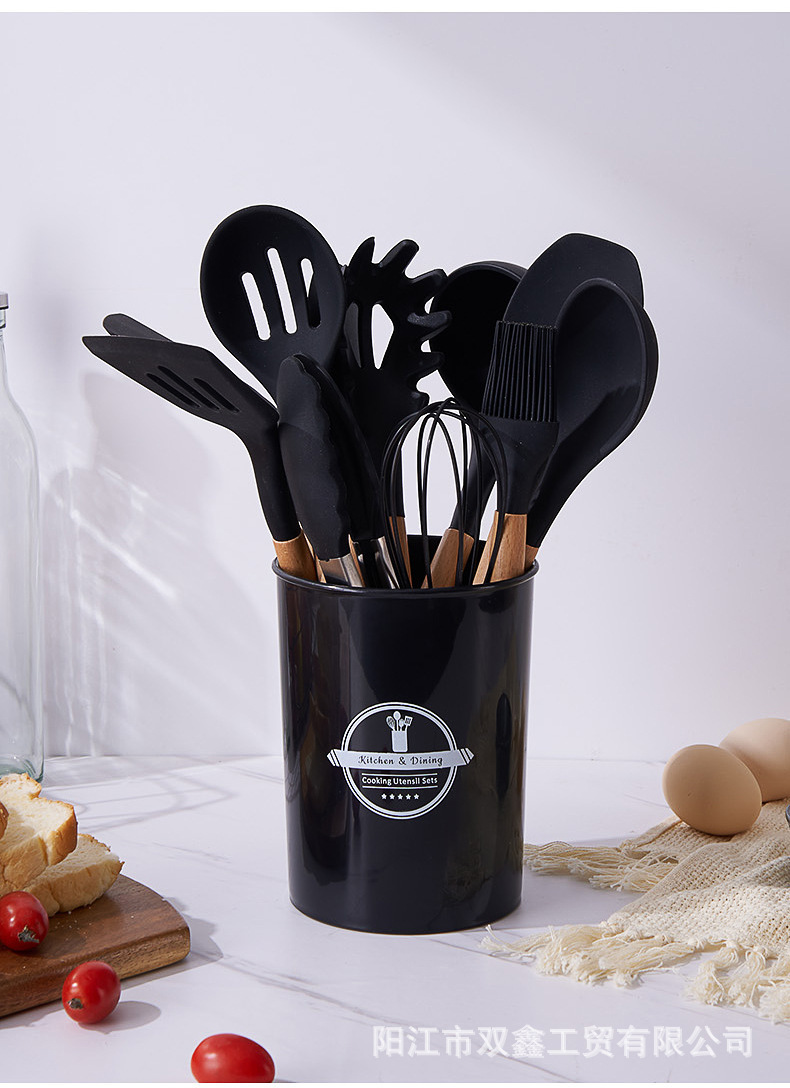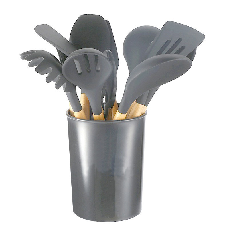 크로스보더 키친 쿠킹 뉴 12 피스 세트 노르딕 그린 나무 손잡이 실리콘 수프 스푼 삽 주방용품 보관 배럴 컬러 박스 세트스토어 가기