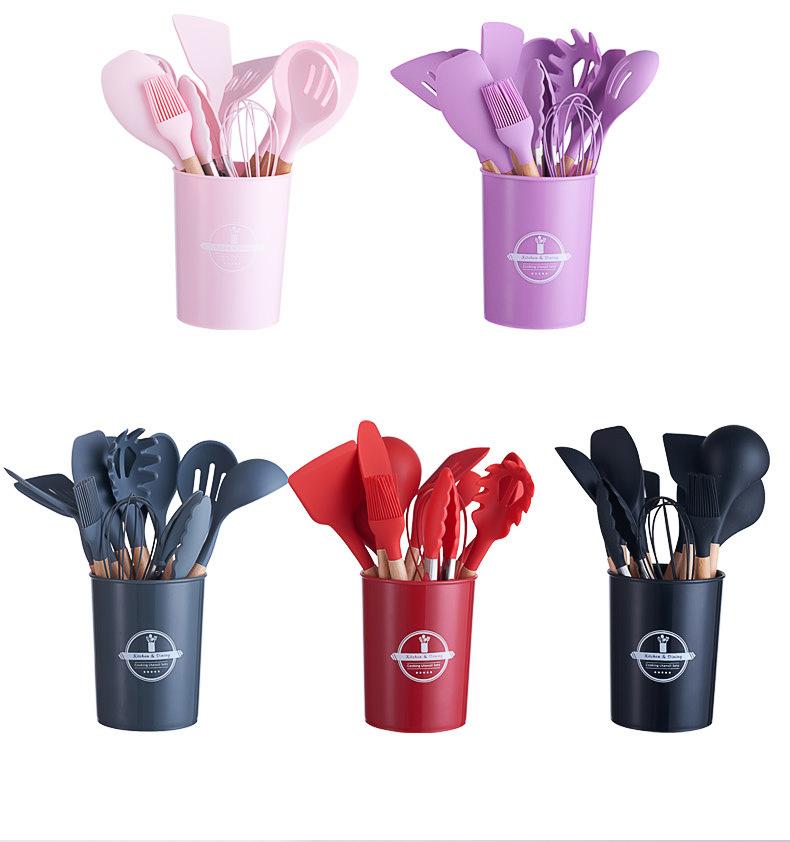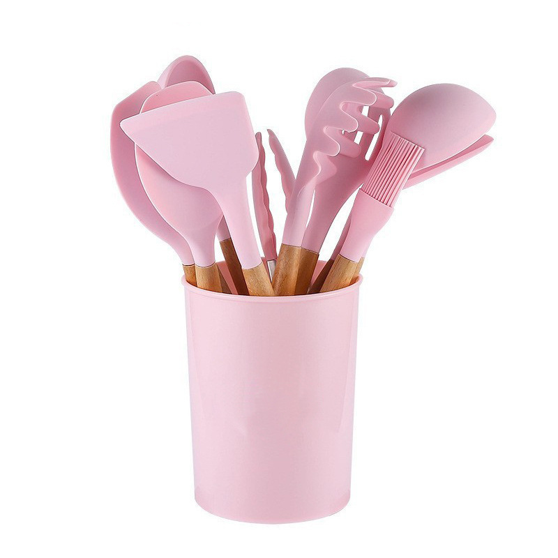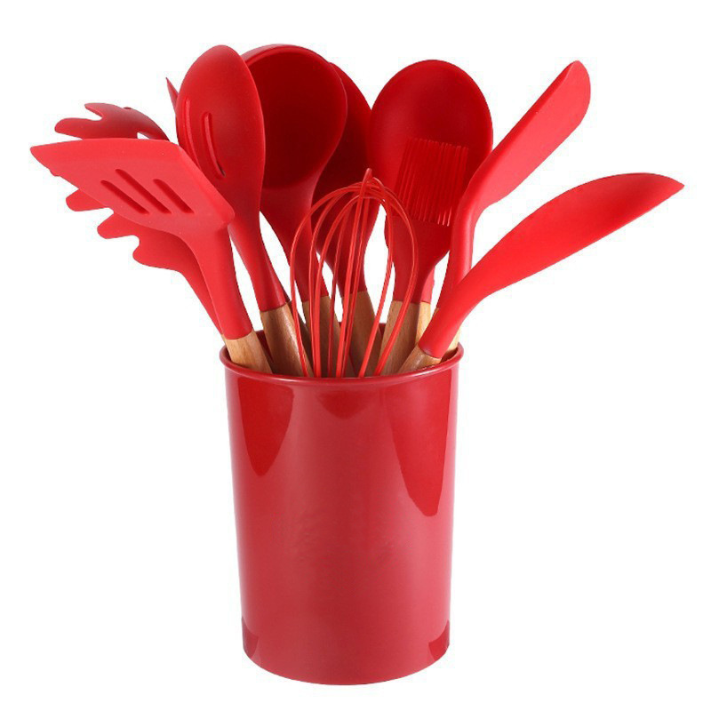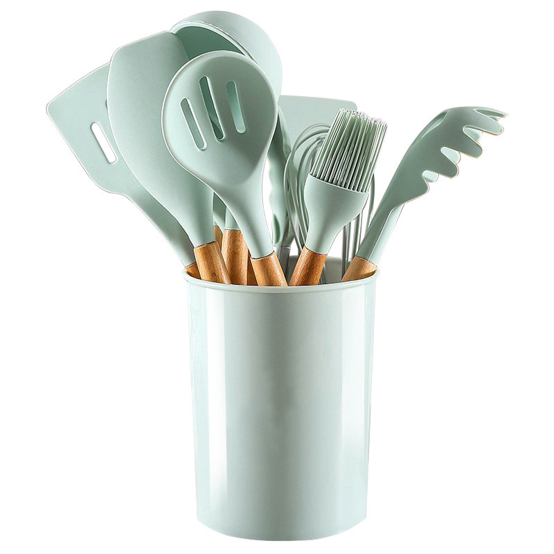 크로스보더 키친 쿠킹 뉴 12 피스 세트 노르딕 그린 나무 손잡이 실리콘 수프 스푼 삽 주방용품 보관 배럴 컬러 박스 세트