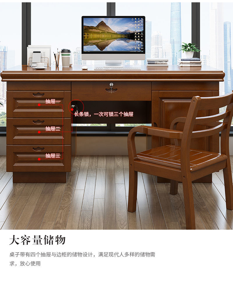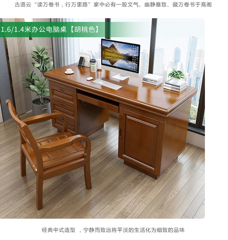 중국어 스타일 단단한 나무 책상 학생 쓰기 책상 컴퓨터 책상 책 의자 세트 사무실 가구의 전체 세트스토어 가기