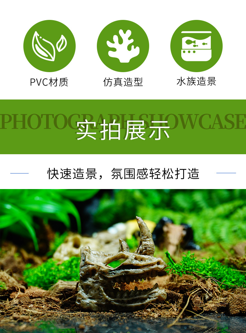 두개골 공룡 두개골 수족관 등반 애완 동물 크롤러 상자 물고기 탱크 DIY 조경 장식 시뮬레이션 PVC 티라노사우루스 난파선