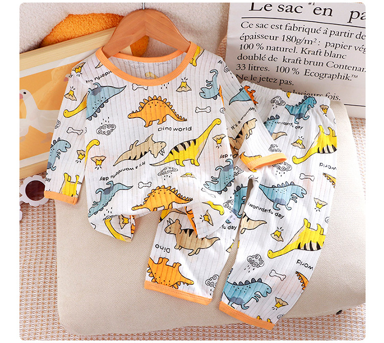 여름 어린이 면 홈 의류 세트 소년과 소녀 얇은 세븐 슬리브 파자마 투피스 아기 에어컨 옷스토어 가기