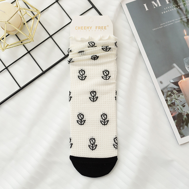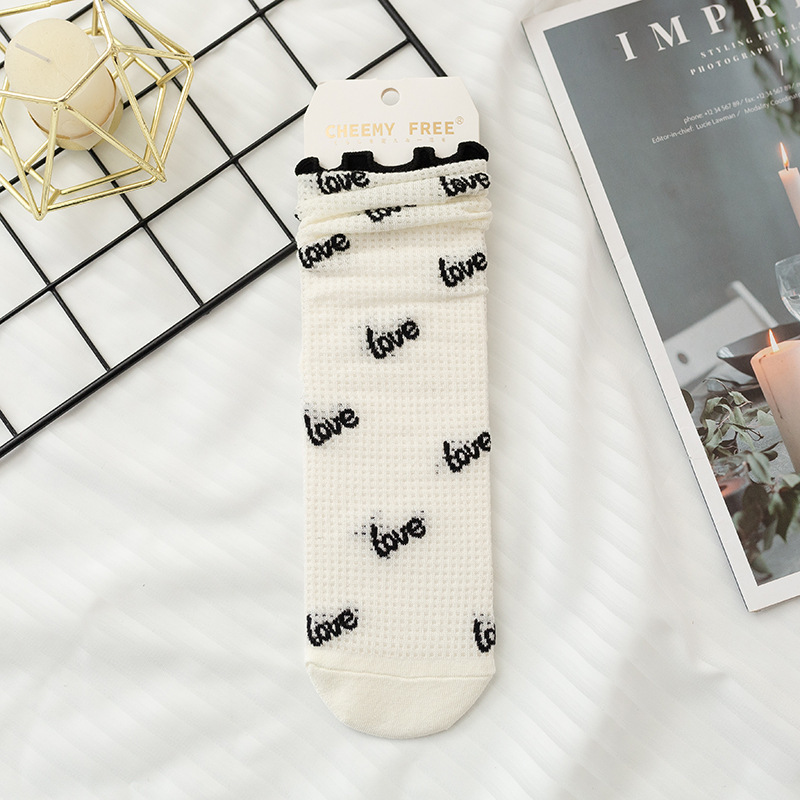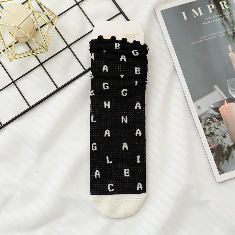 어린이 미드 튜브 양말 여름 새 소녀 스타킹 얇은 아기 무릎 메쉬 흑백 글자 모기 방지 양말스토어 가기