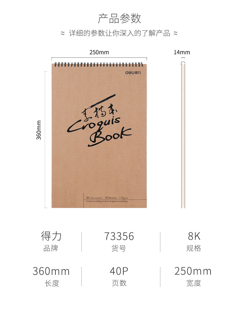 델리 a4 스케치북 스케치북 예술 학생 손으로 그린 16K 특수 두꺼운 학생 스케치 종이 빈 그림