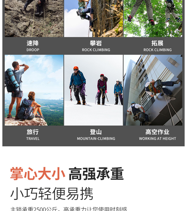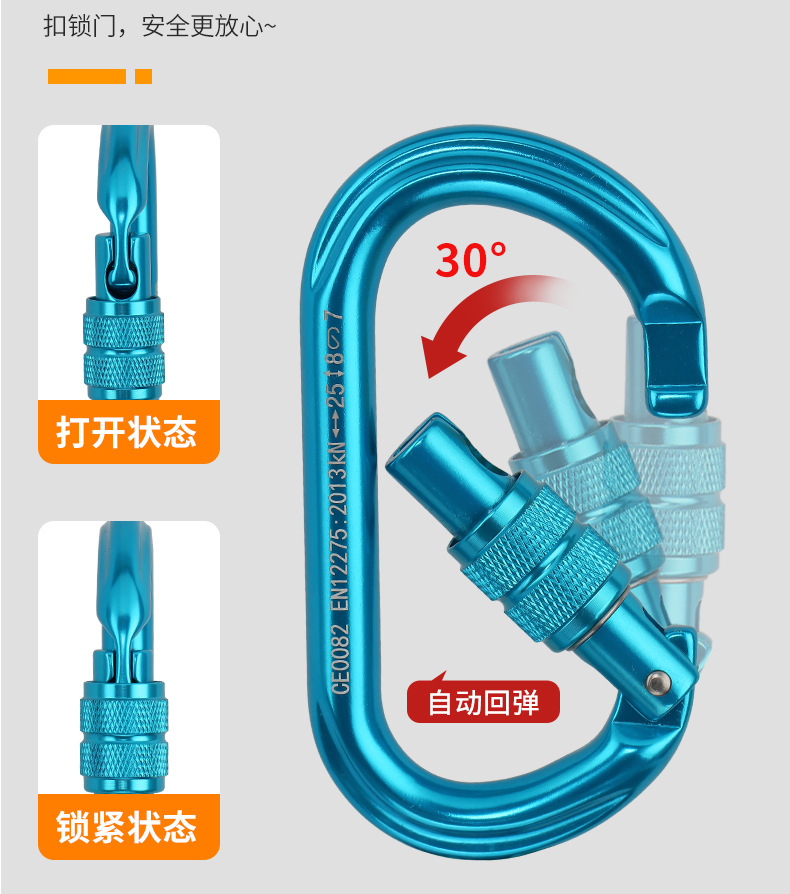 고리 D 형 항공 알루미늄 스프링 버클 GM9155 메인 잠금 자물쇠 야외 등산 및 암벽 등반 속도 저하 안전 후크 잠금스토어 가기