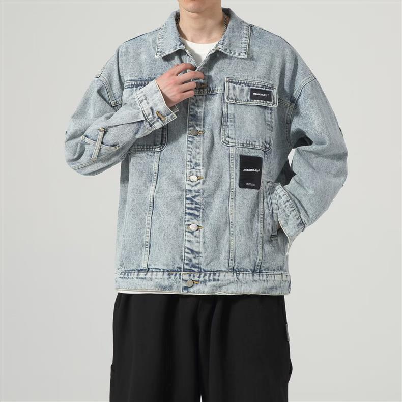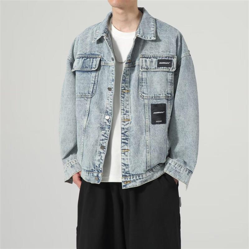 세련된 봄과 가을 in 패션 브랜드 커플 재킷 bf 느슨한 미국 복고풍 올드 스타일 디자인 센스 데님 재킷 남성용