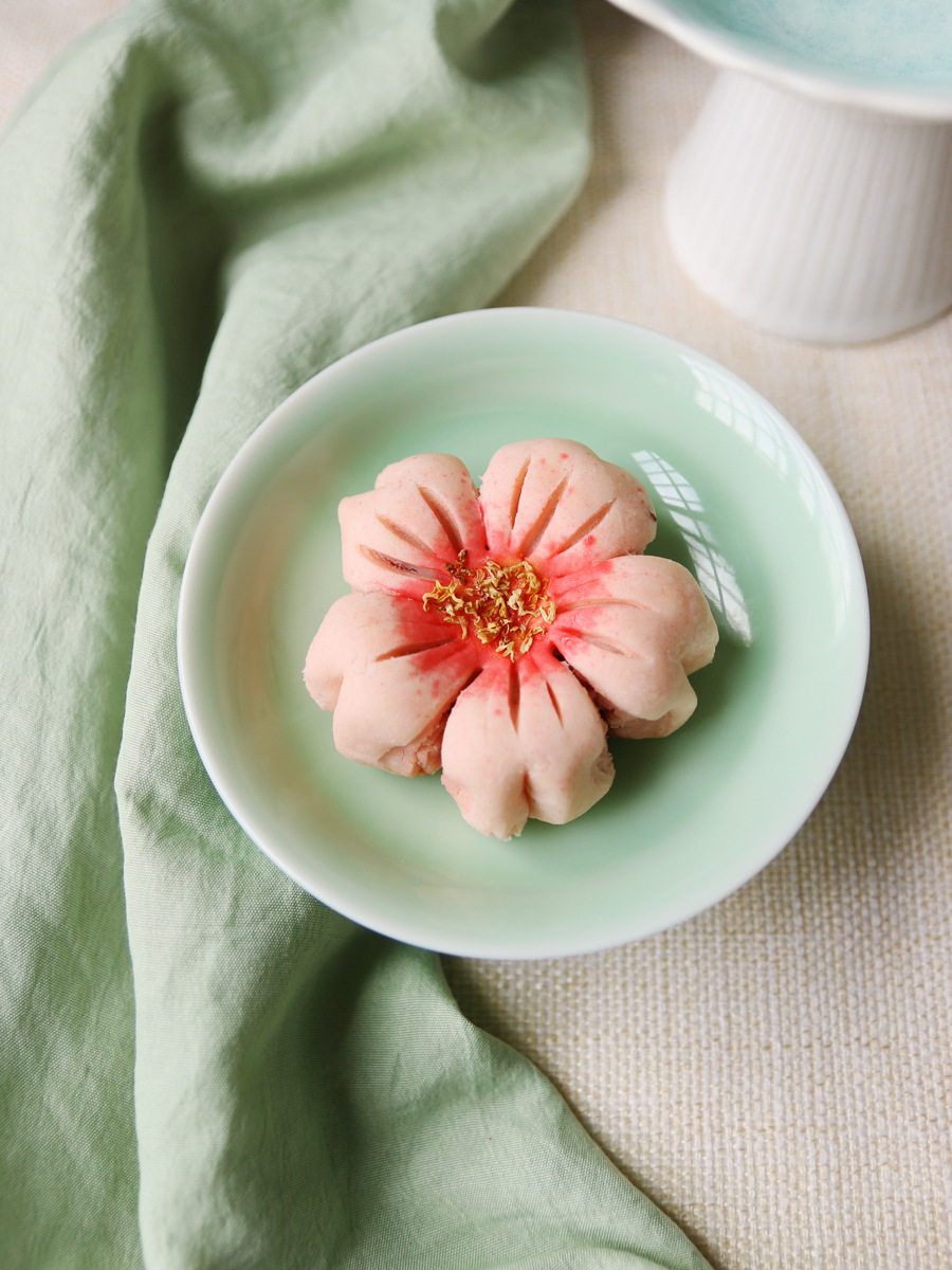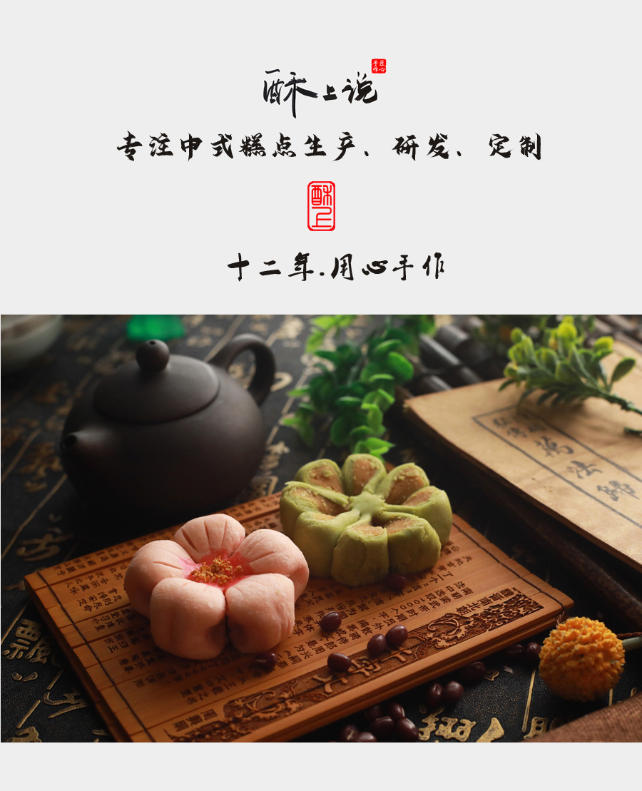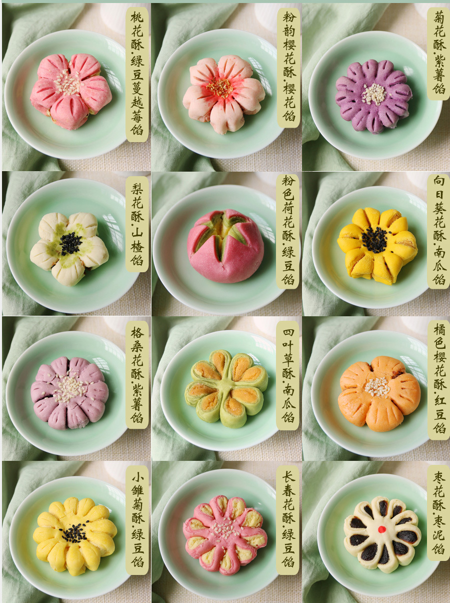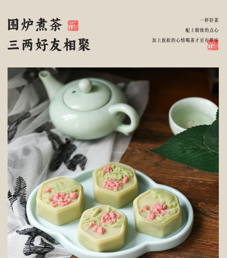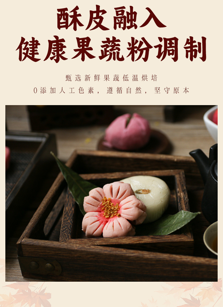 복숭아 꽃과 연꽃 꽃의 샘플 1개, 중국 수제 디저트, 전통 과자 도매, 송나라 티타임 간식스토어 가기