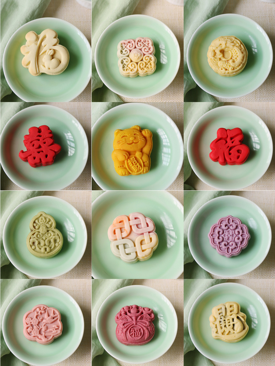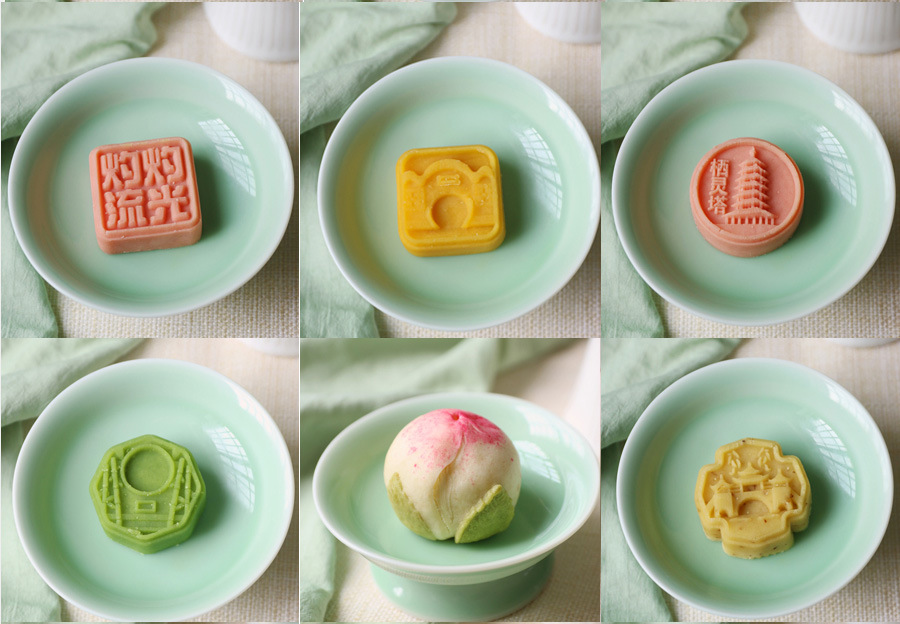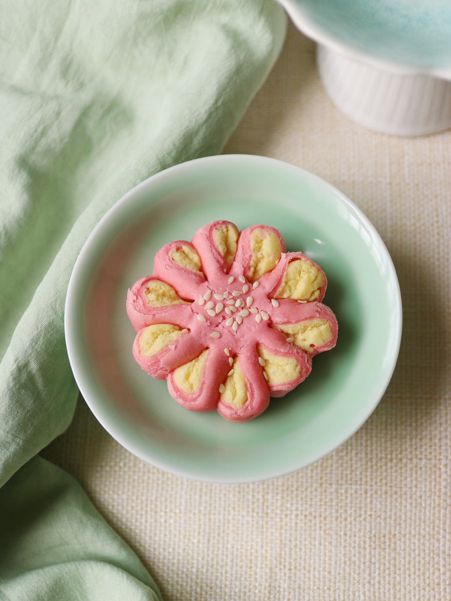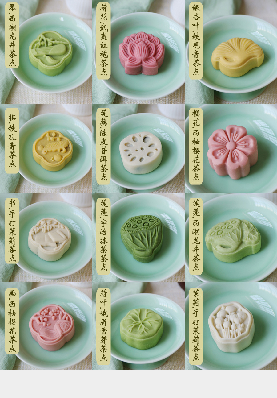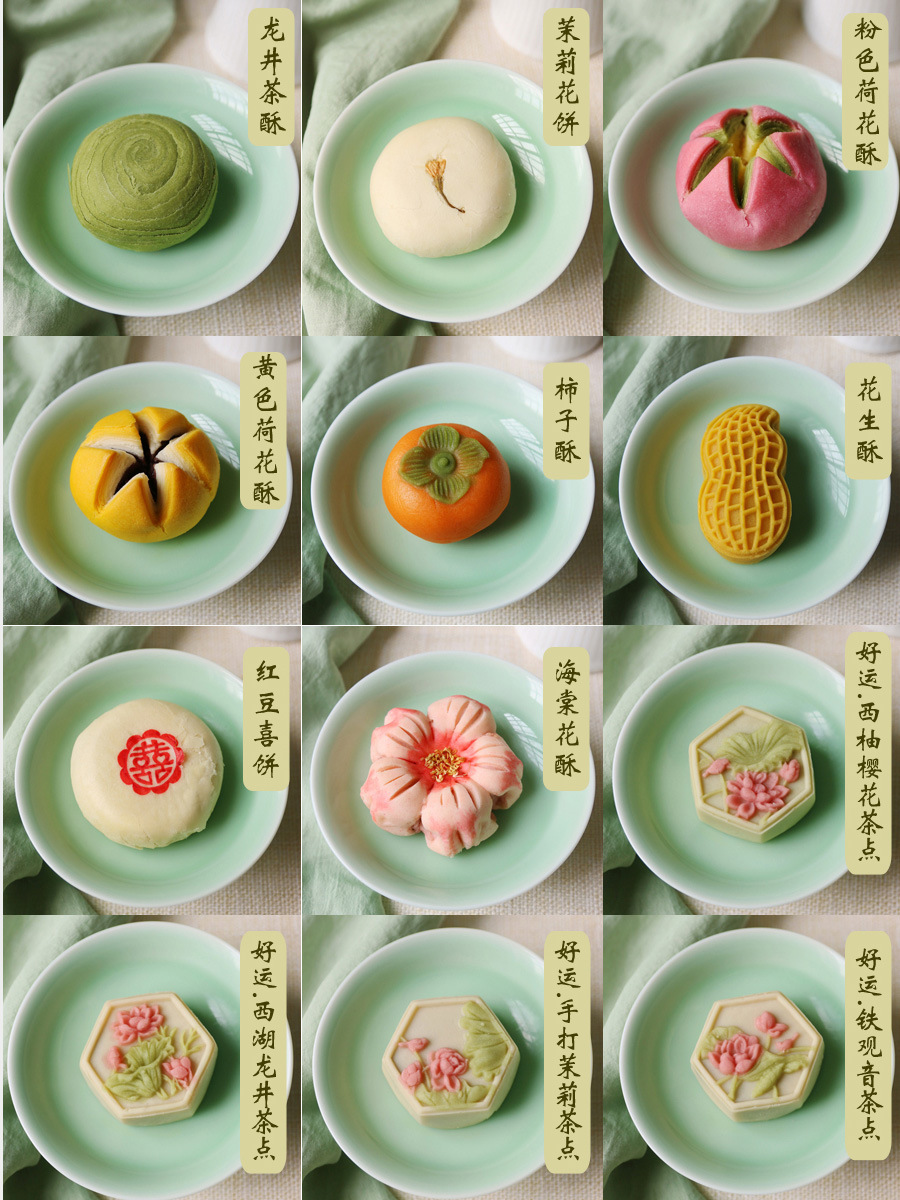 복숭아 꽃과 연꽃 꽃의 샘플 1개, 중국 수제 디저트, 전통 과자 도매, 송나라 티타임 간식스토어 가기