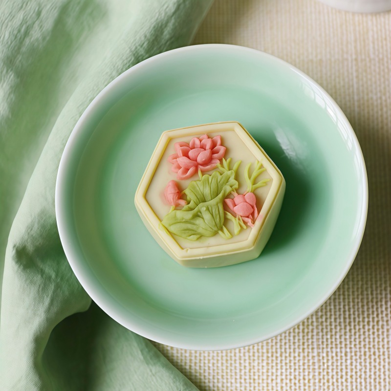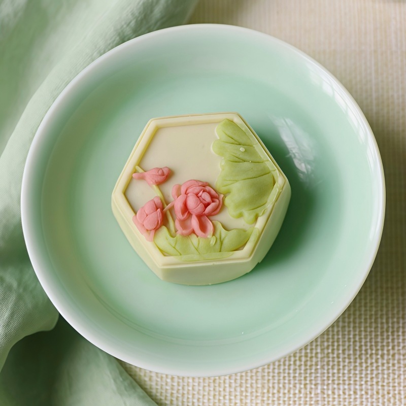 복숭아 꽃과 연꽃 꽃의 샘플 1개, 중국 수제 디저트, 전통 과자 도매, 송나라 티타임 간식