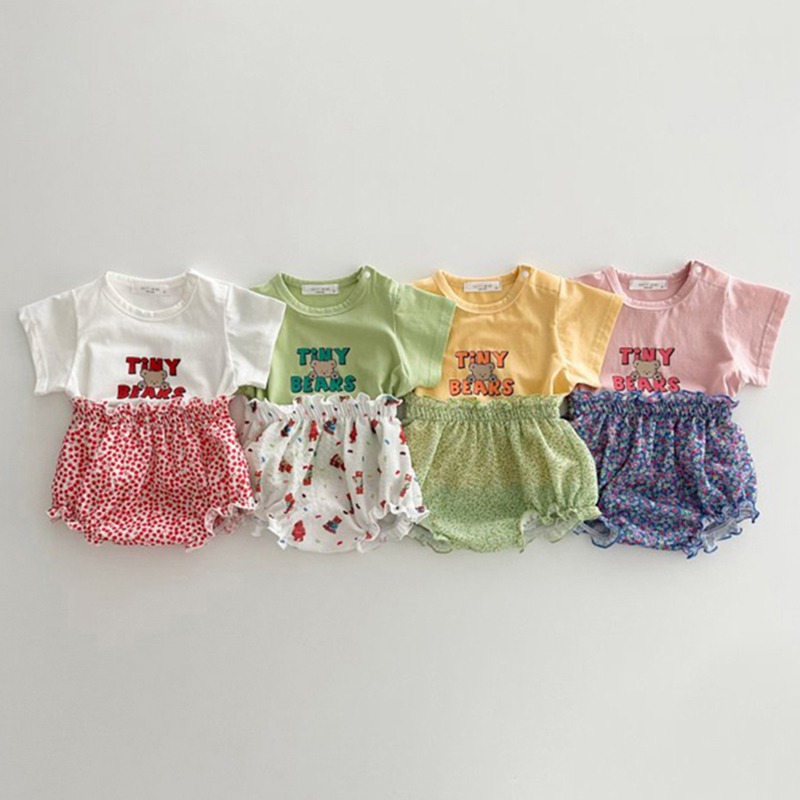 2024 여름 새로운 남성과 여성의 아기 반팔 반바지 투피스 아기 옷 어린이 서양식 세트 얇은 트렌디스토어 가기