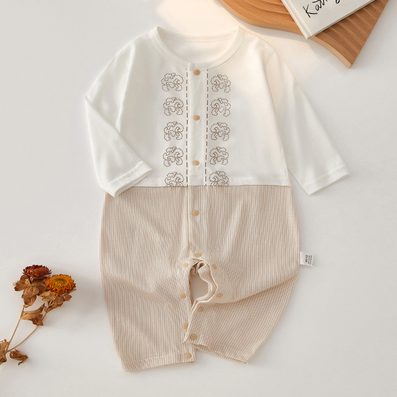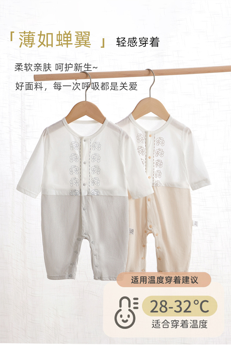 아기 옷 여름 얇은 긴팔 Hassel 남성용 순면 잠옷 신생아 등산 옷 아기 점프 슈트스토어 가기