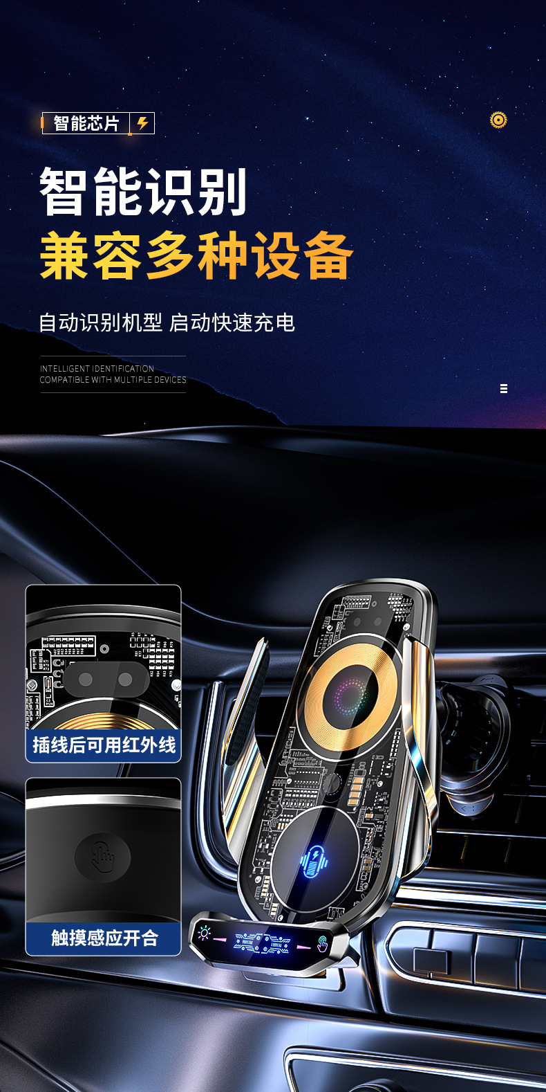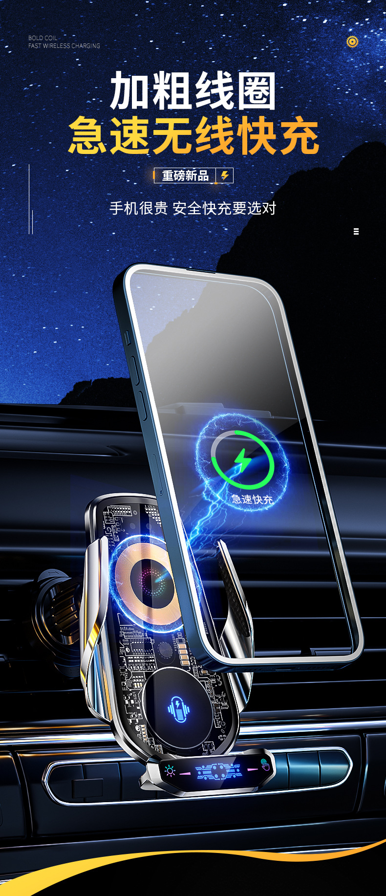 모직라 D8 라인 디자인 차량용 무선 충전 휴대폰 거치대 자동 개폐 내비게이션 자동차 용품 무선 충전
