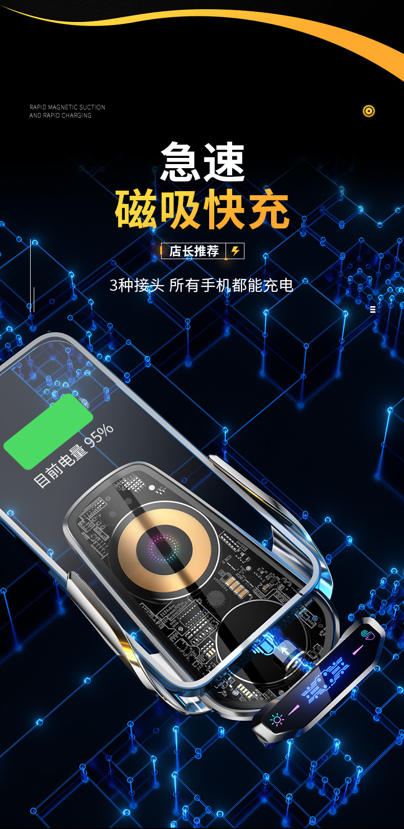 모직라 D8 라인 디자인 차량용 무선 충전 휴대폰 거치대 자동 개폐 내비게이션 자동차 용품 무선 충전스토어 가기