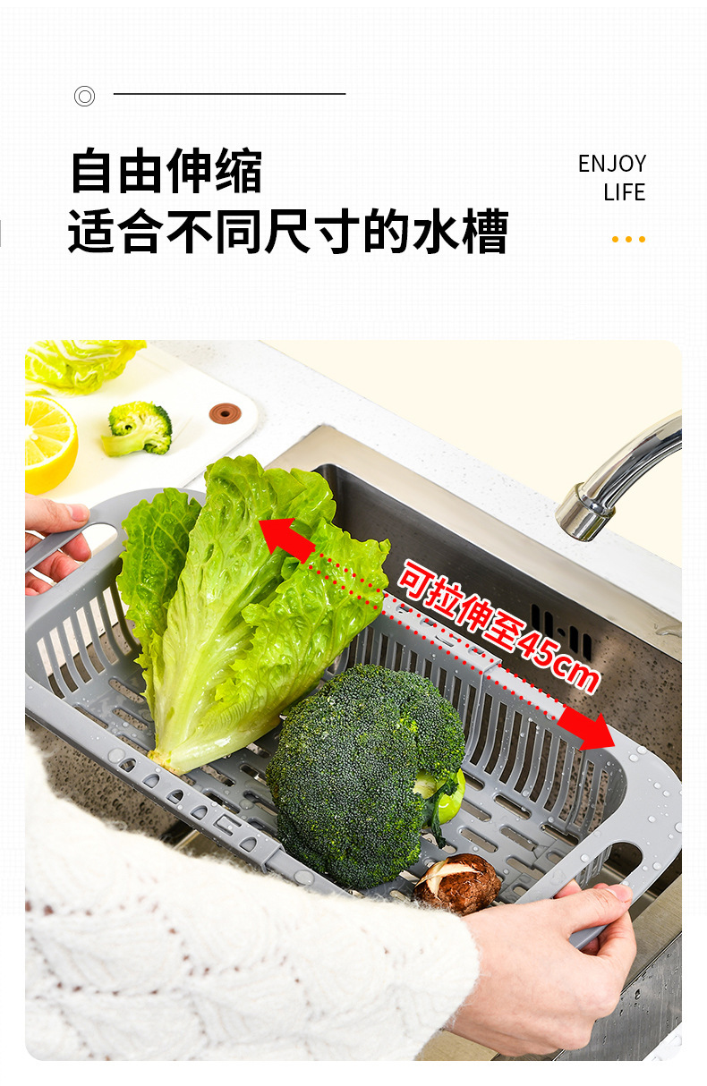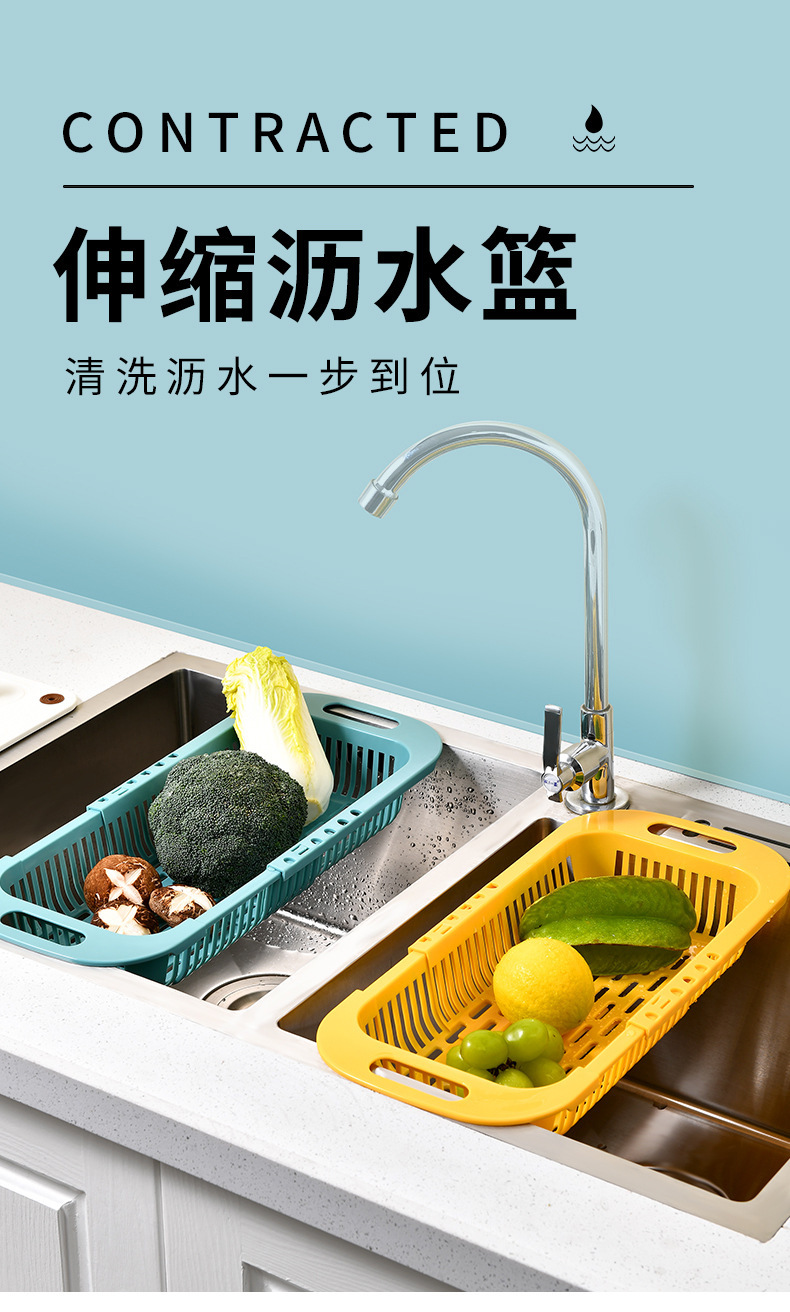 개폐식 조절 야채 바구니 국경 간 협력 일 용품 가정용 주방 식기 세척 랙 텔레스코픽 배수 바구니스토어 가기
