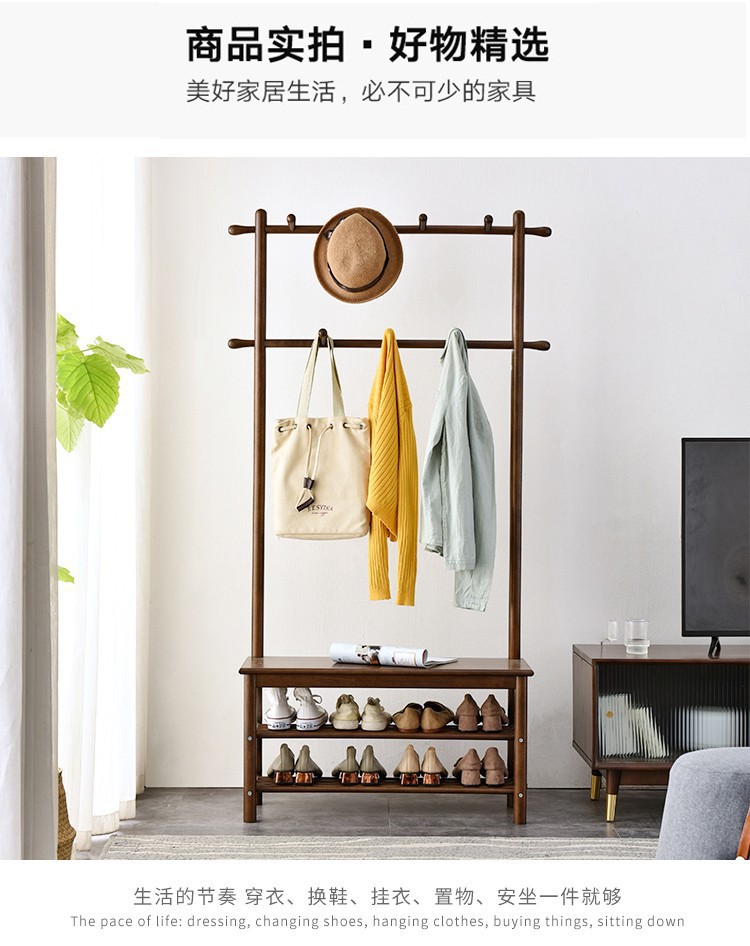 Huimei 코트 랙 간단한 단단한 나무 스토리지 랙 침실 옷걸이 창조적 인 옷걸이 홈스토어 가기