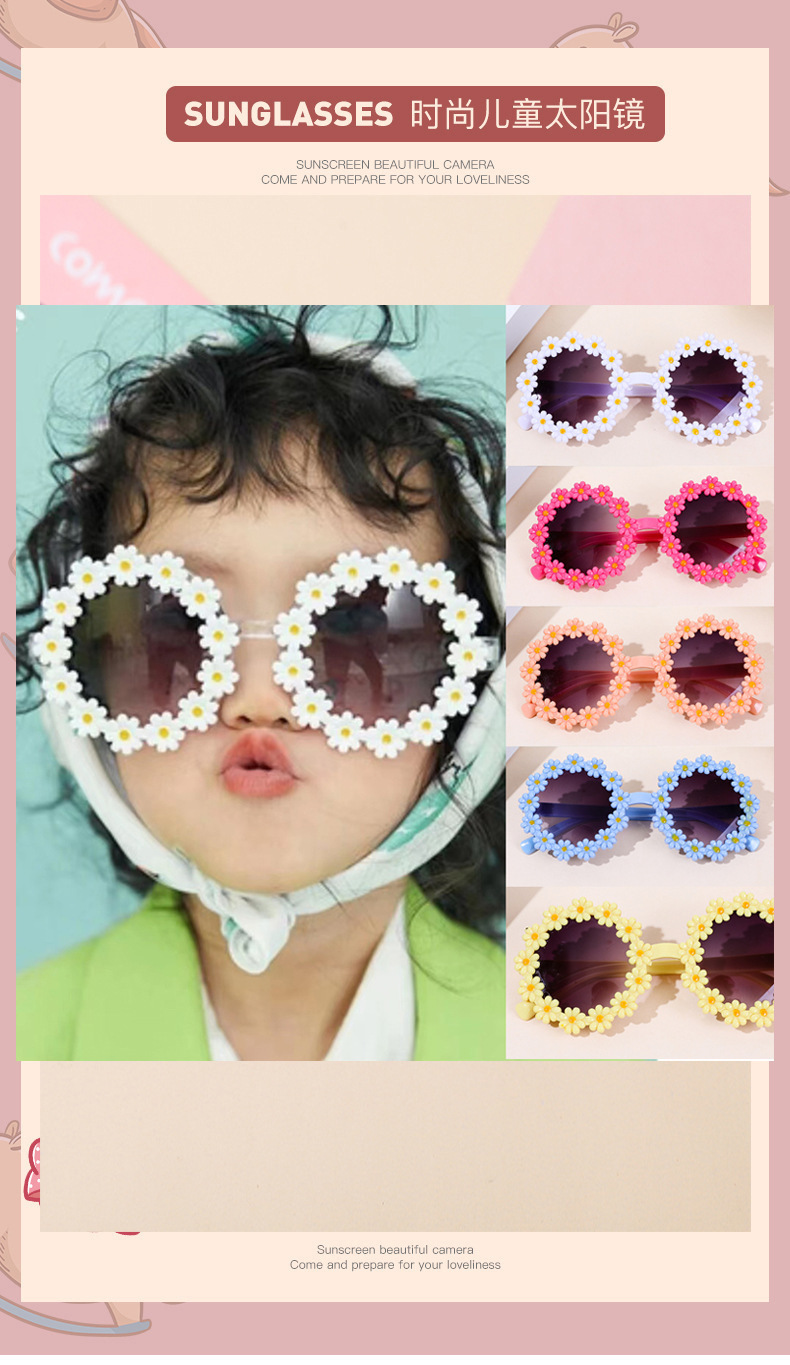 2024 새로운 어린이 선글라스 데이지 귀여운 꽃 선글라스 라운드 프레임 꽃잎 안경
