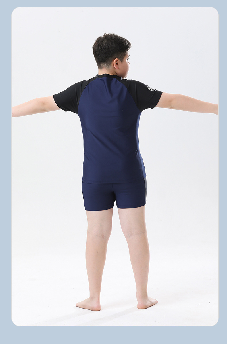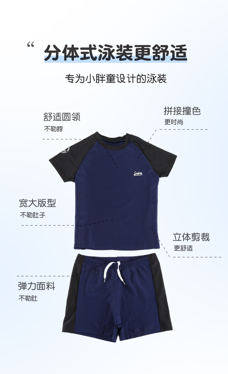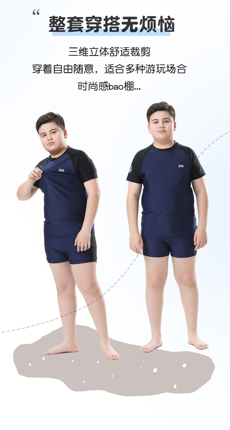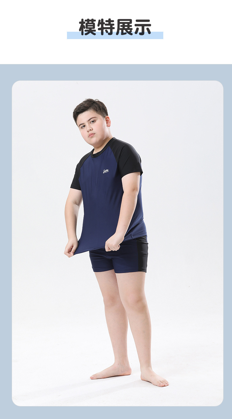 소년 수영복 2025 새로운 대형 솔리드 컬러 스플릿 여름 중형 및 대형 아동 수영복 느슨한 뚱뚱한 아동 수영복 도매스토어 가기