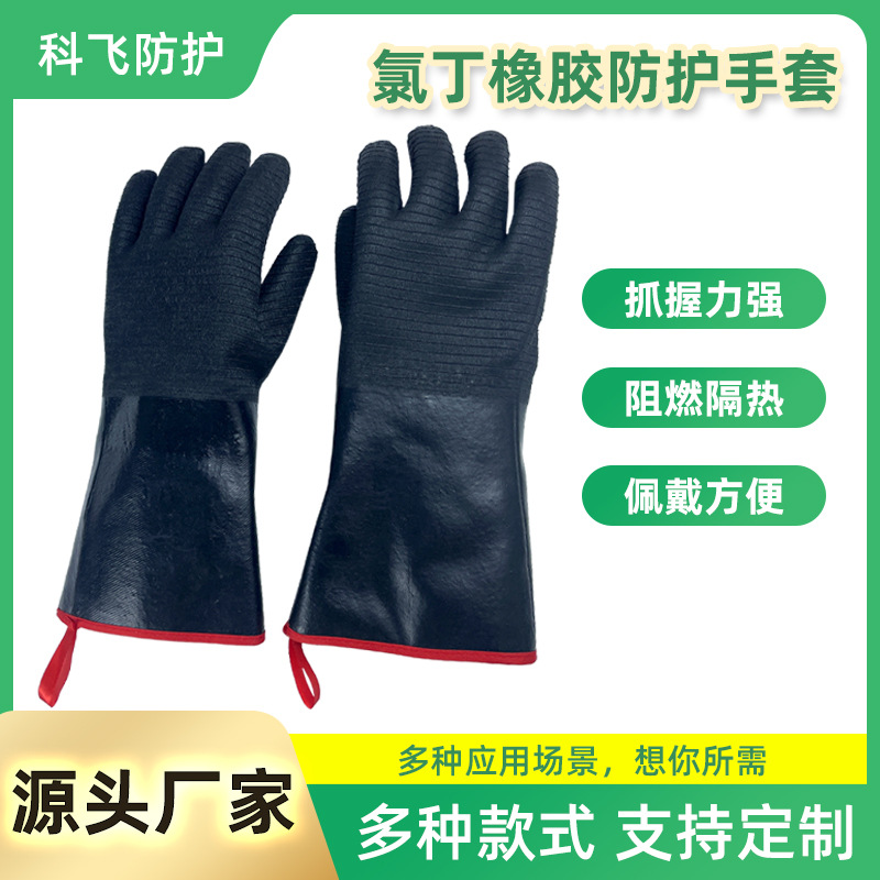 소스 공장 두꺼운 내마모성 난연 단열 보호 검은 색 고온 산업용 네오프렌 방목 장갑스토어 가기