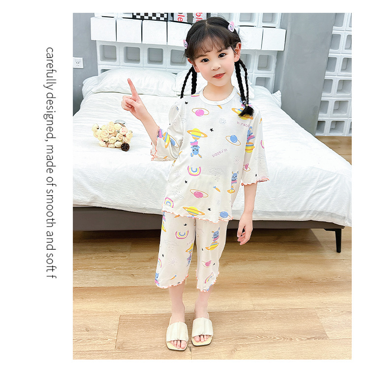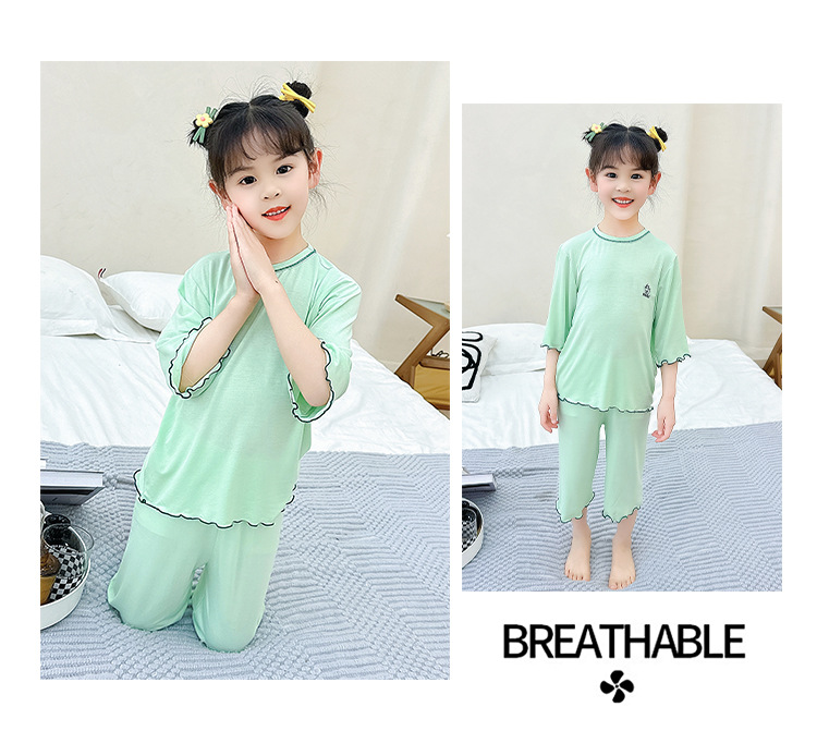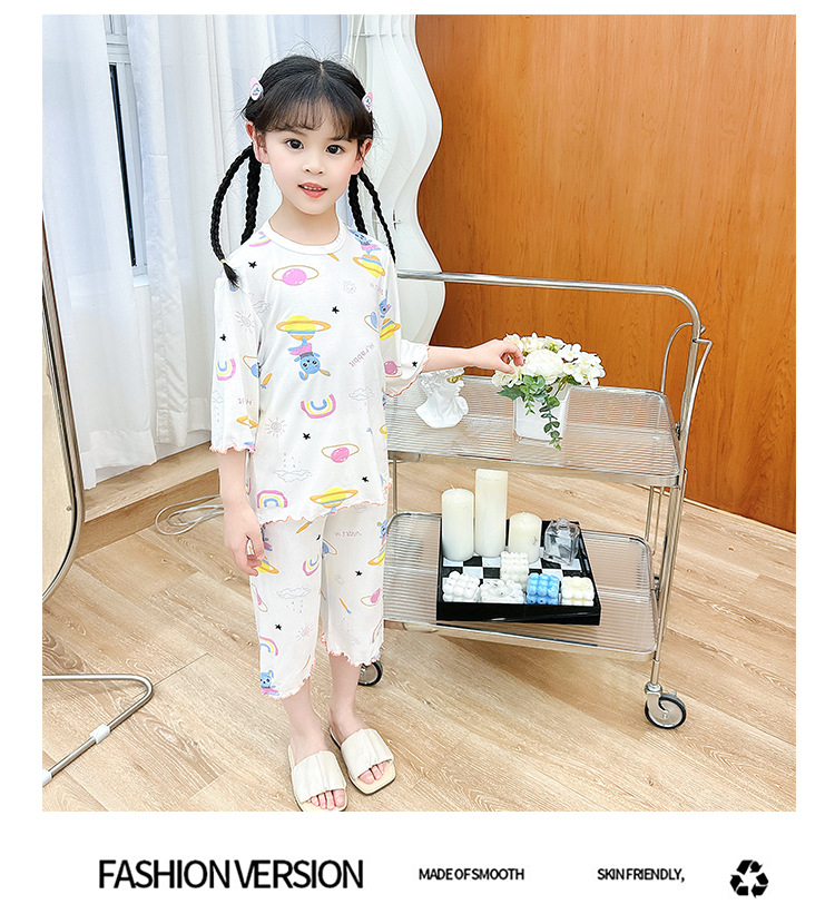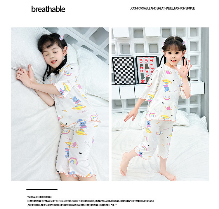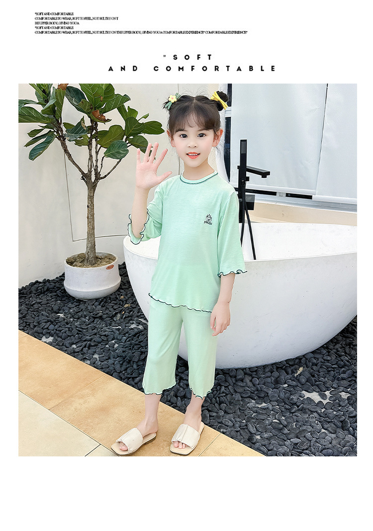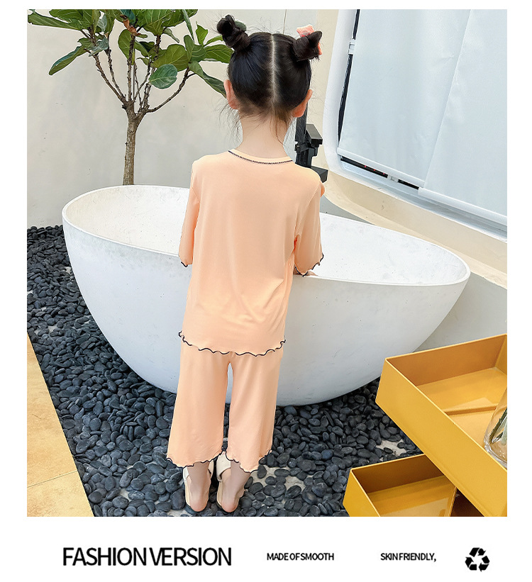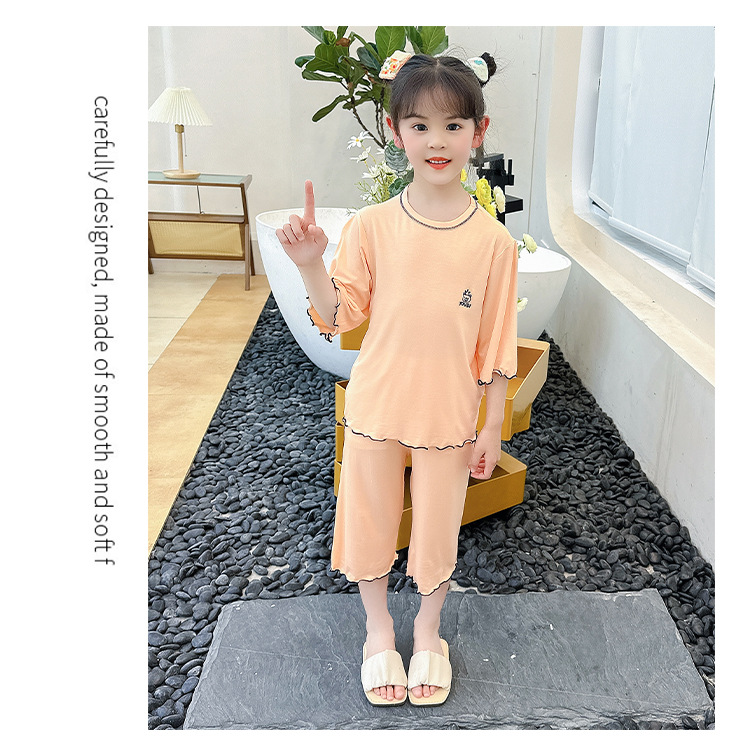 여아 잠옷 모달 귀 가장자리 어린이 여름 얇은 에어컨 옷 여아 큰 어린이 가정 옷 세트