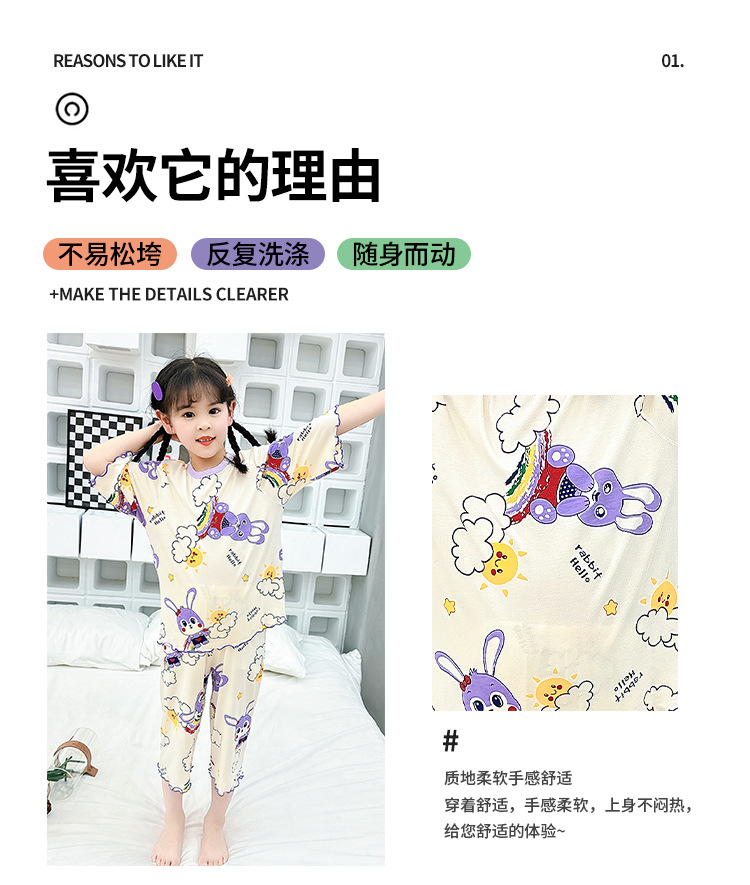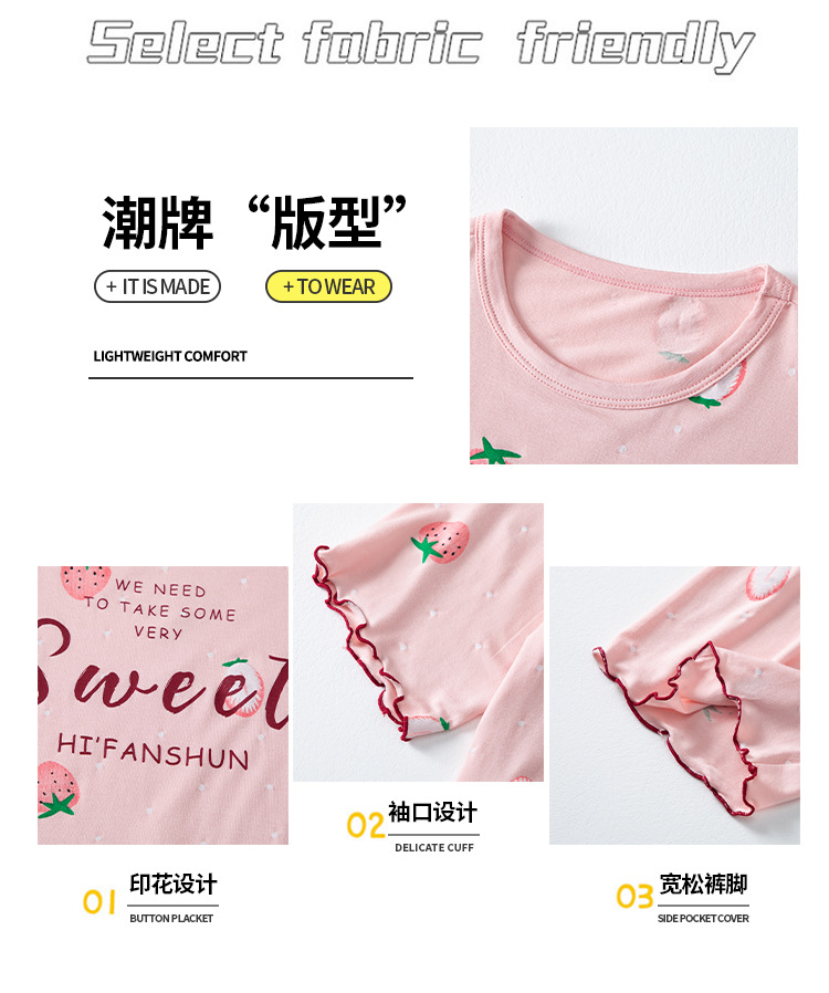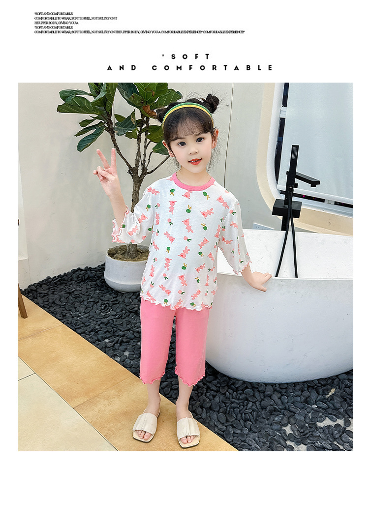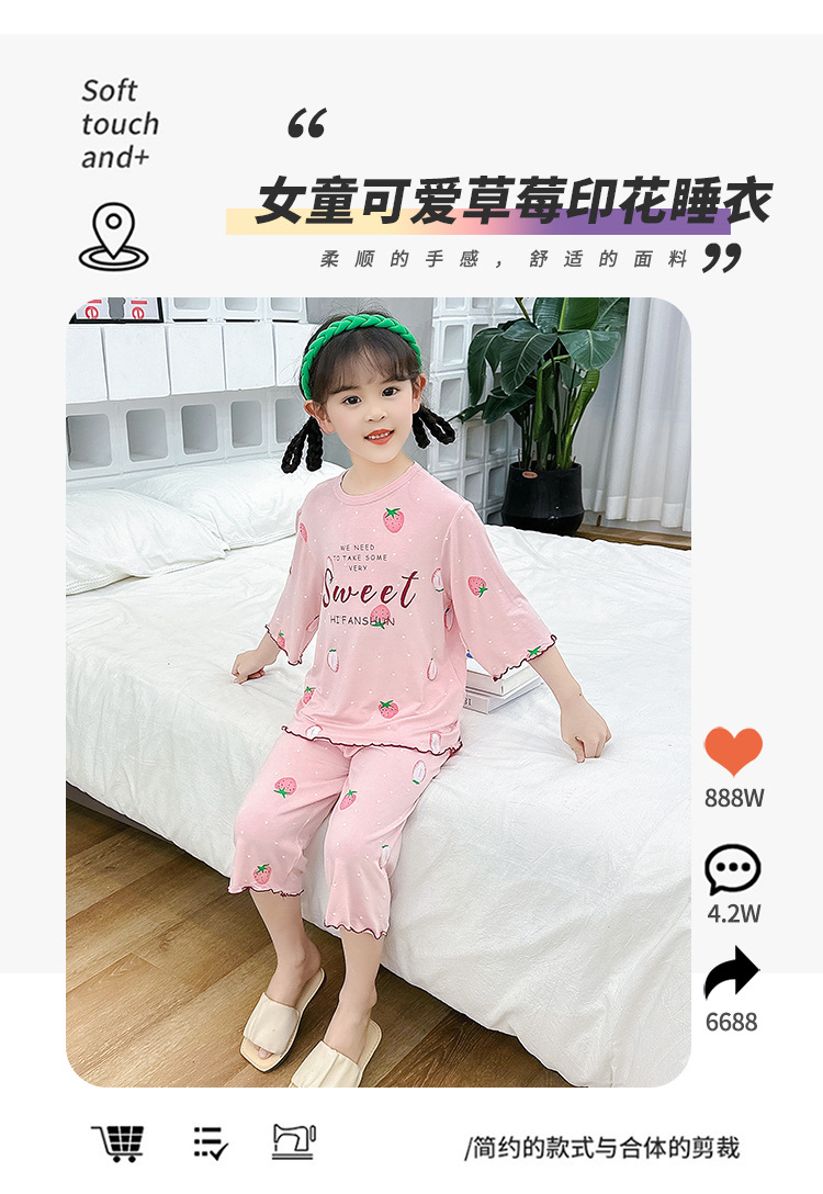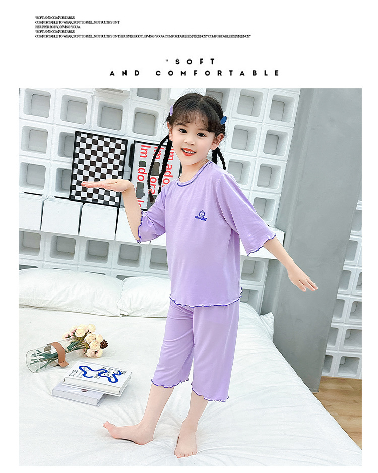 여아 잠옷 모달 귀 가장자리 어린이 여름 얇은 에어컨 옷 여아 큰 어린이 가정 옷 세트