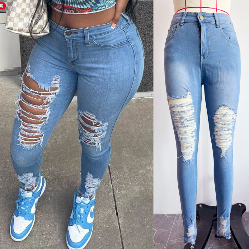 재고 유럽과 미국은 AliExpress 아마존 이베이 홀 데님 레깅스 여성 바지 공장 아울렛스토어 가기