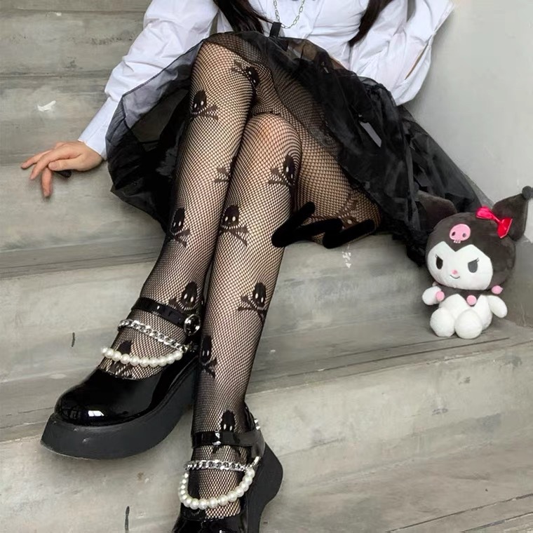 사이버 연예인 두개골과 크로스본 그리드 실크 스타킹 학생을위한 Didi 현상금 섹시한 블랙 실크 중공 모든 매치 하의 팬티 스타킹스토어 가기