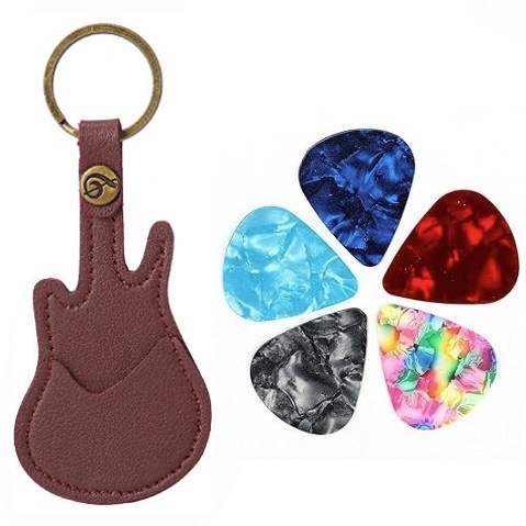 • 픽 지갑 [기타형] 브라운 + 픽 셀룰로이드 5개 0.96 두께