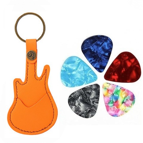 • 픽 지갑 [기타형] 오렌지 + 픽 셀룰로이드 5개 0.96 두께