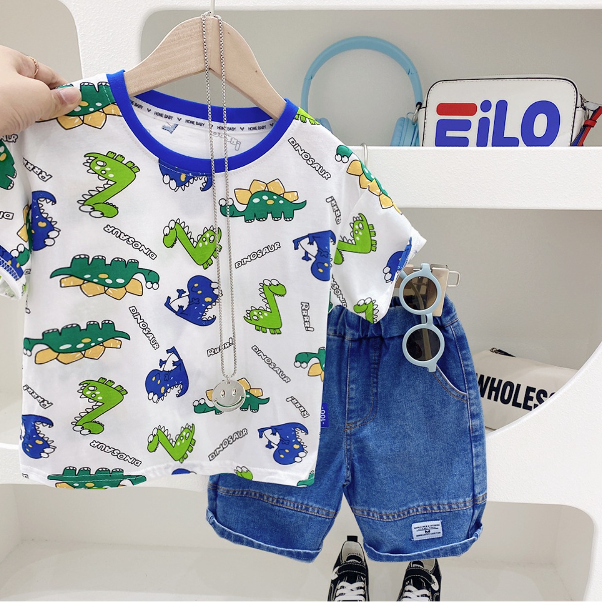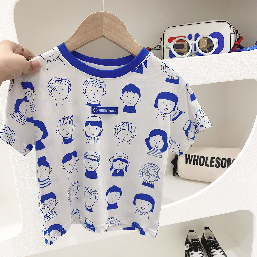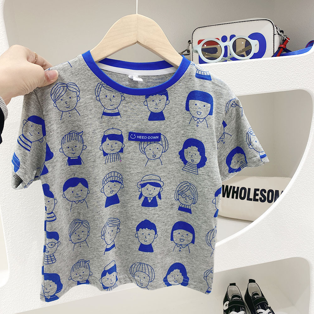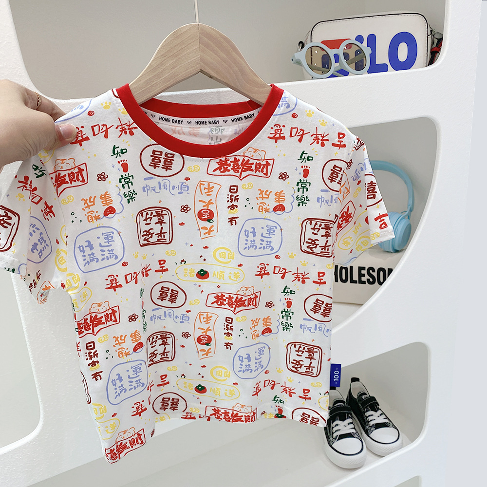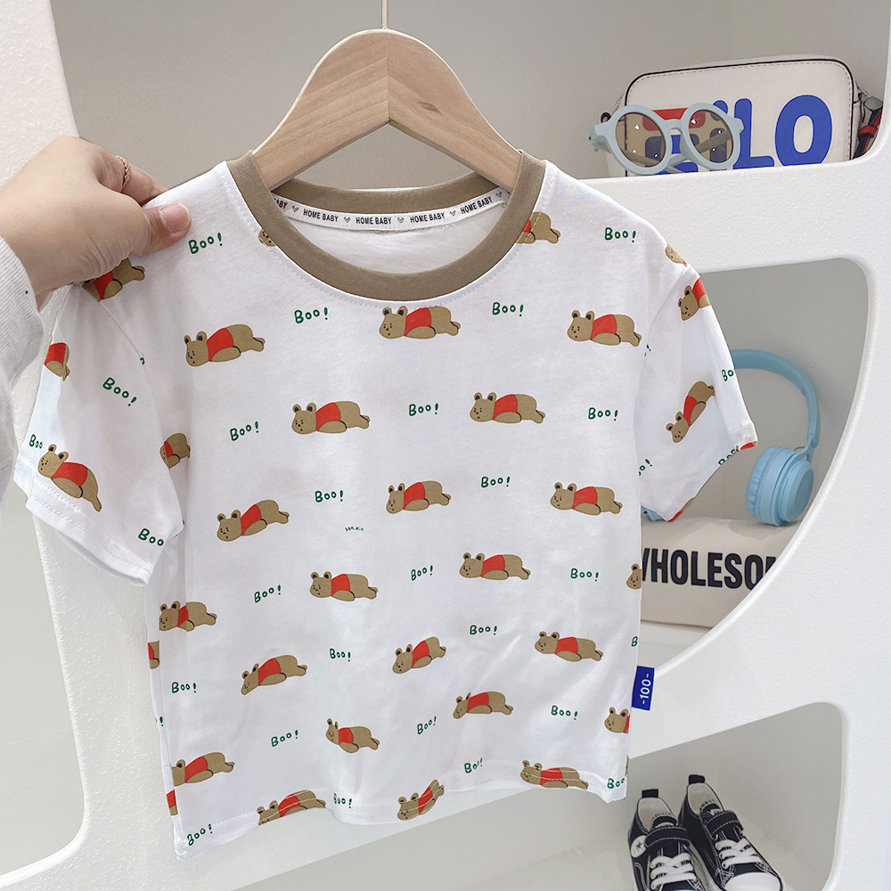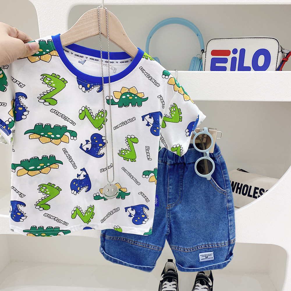 2023 여름 새로운 어린이 반팔 티셔츠 남성용 아기의 재미있는 만화 공룡 라운드 넥 셔츠 얇은 통기성 반 소매스토어 가기