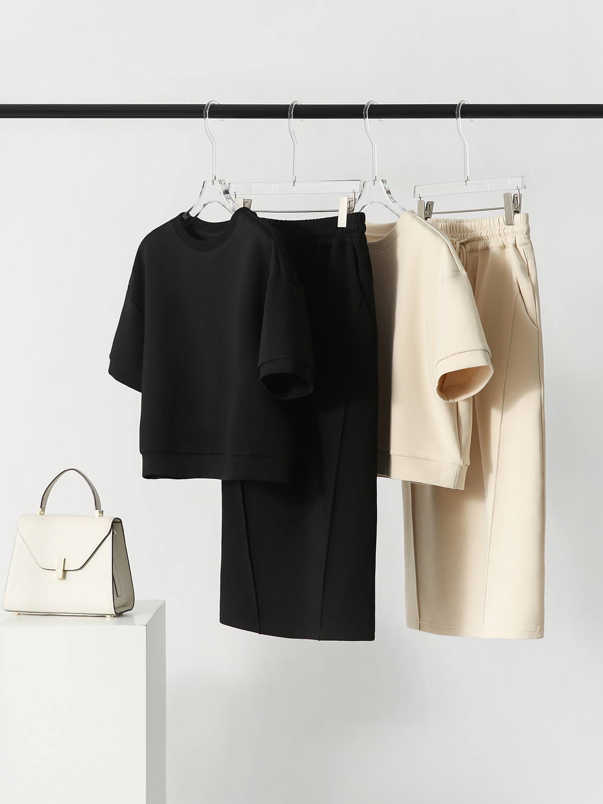 2025 봄 여름 스포츠 캐주얼 게으른 정장 여성 소프트 에어 코튼 반팔 탑 + 슬릿 스커트 투피스 세트스토어 가기