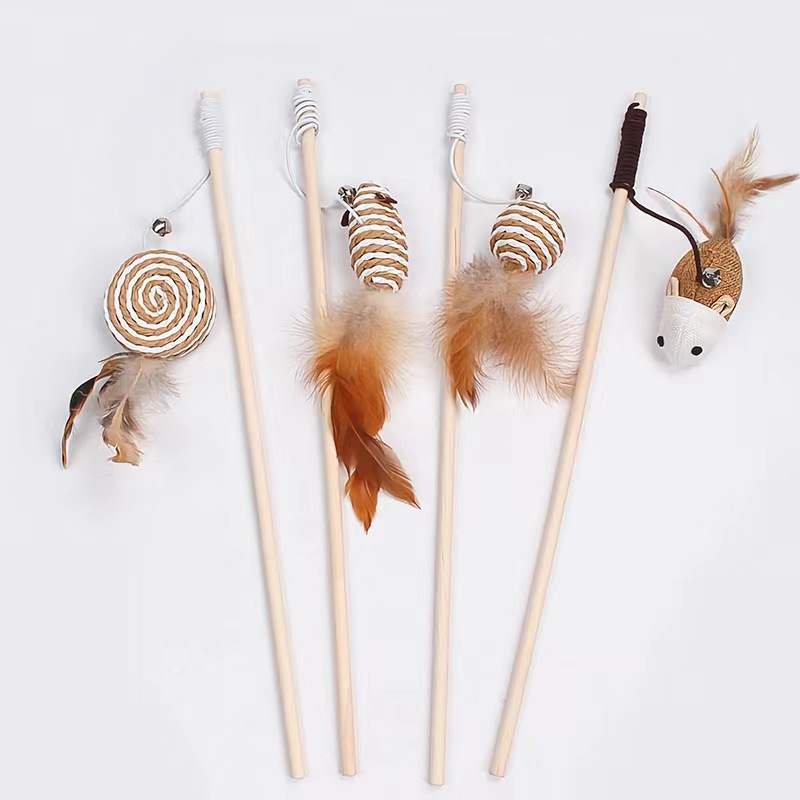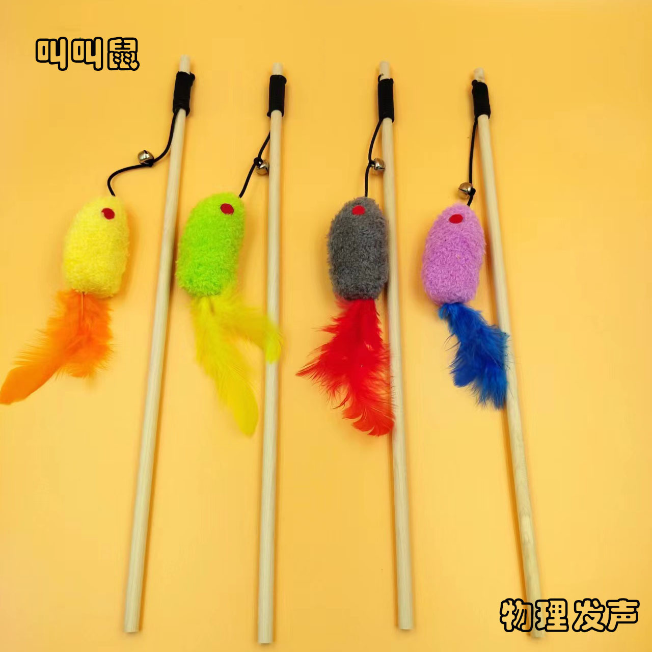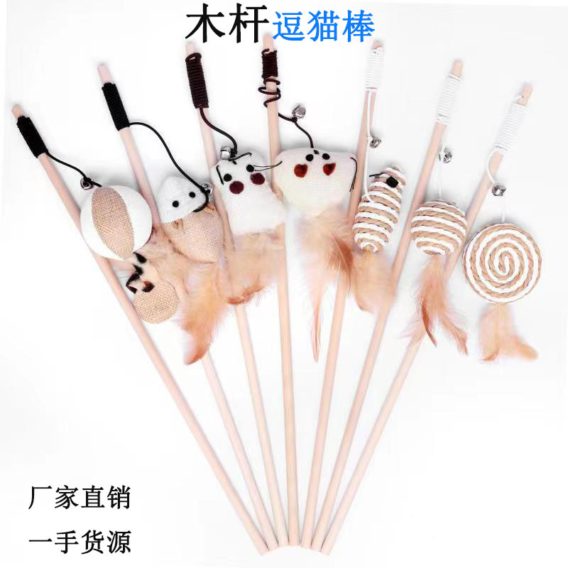 고양이 애타게 고양이 스틱 깃털 지루함을 덜어주는 벨 마우스 대화 형 셀프 하이 나무 고양이 스틱 도매 애완 동물 용품 장난감스토어 가기