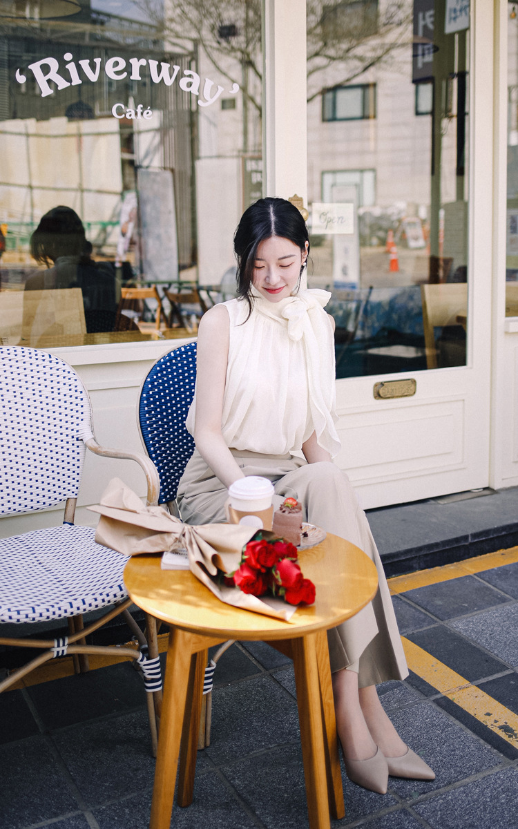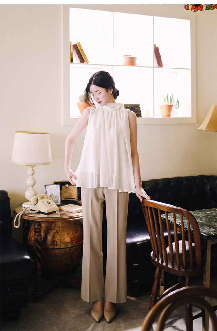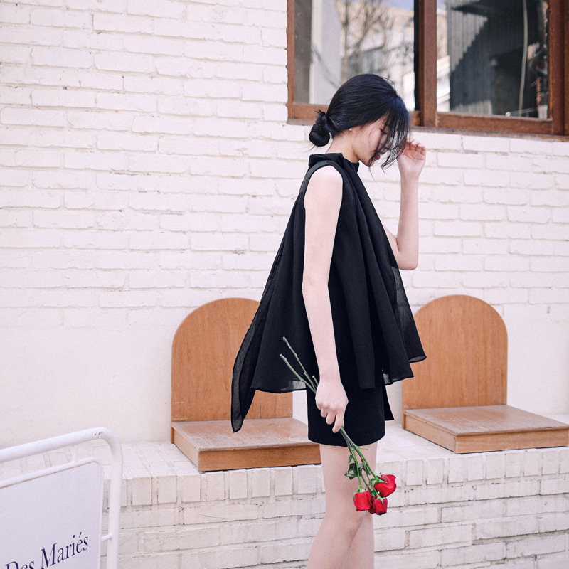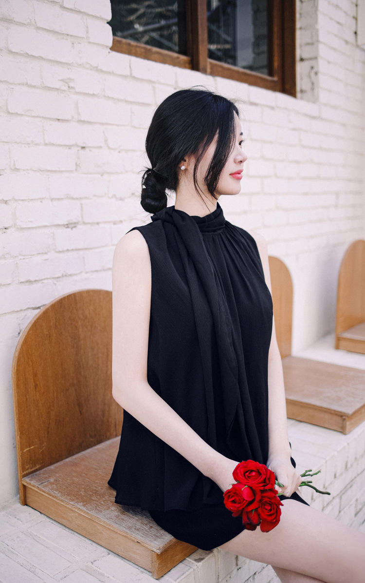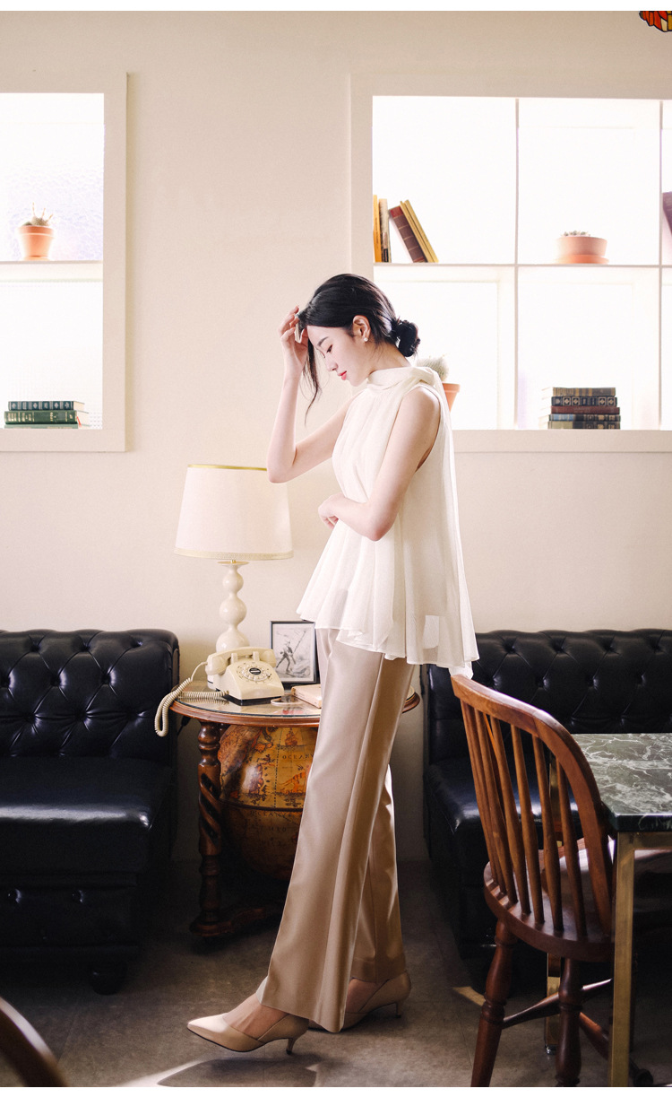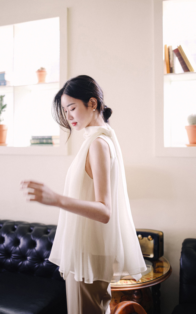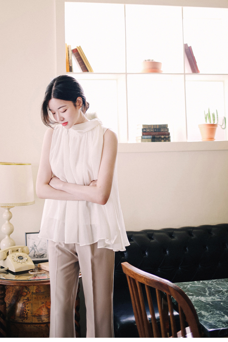 민소매 쉬폰 셔츠 여성용 2023 여름 새로운 젠틀 스타일 느슨한 우아한 탑 프렌치 보우 리본 셔츠스토어 가기