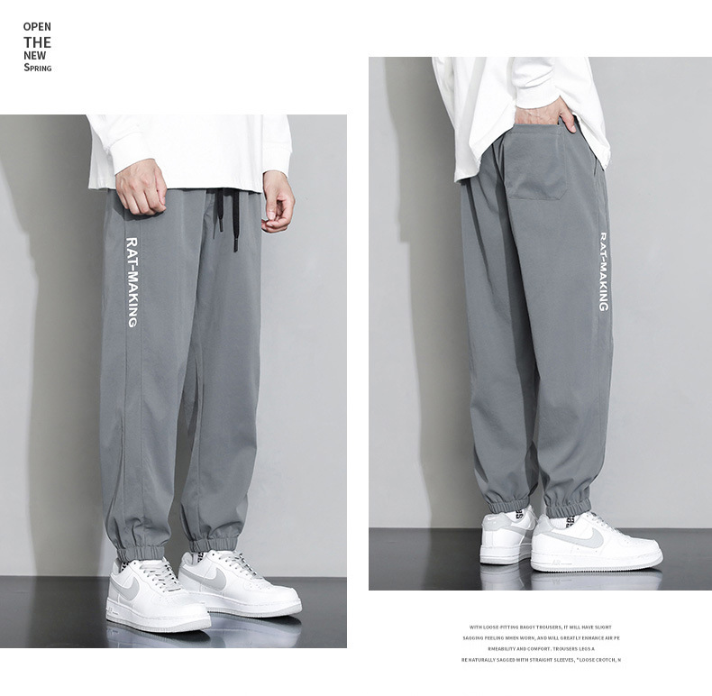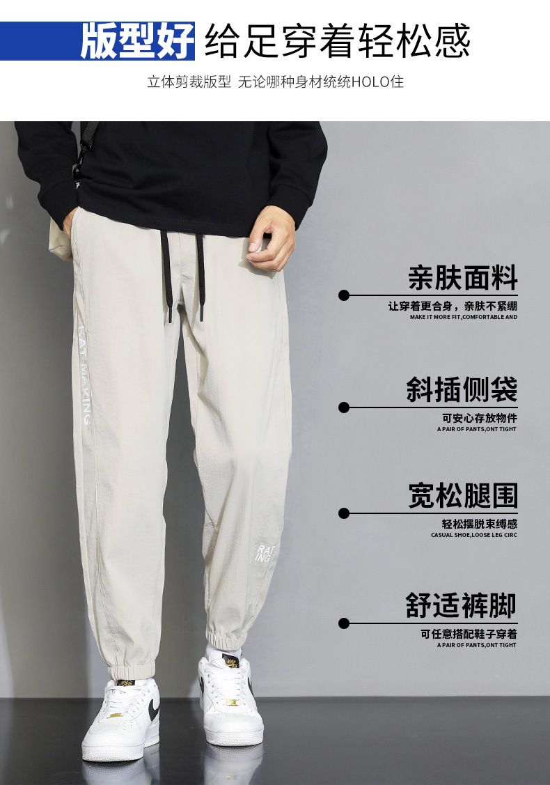 NASA 아이스 실크 캐주얼 팬츠 남성용 2024 봄 가을 얇은 스포츠 루즈핏 조거 팬츠 여름 남성용 9부 길이 바지 속건스토어 가기