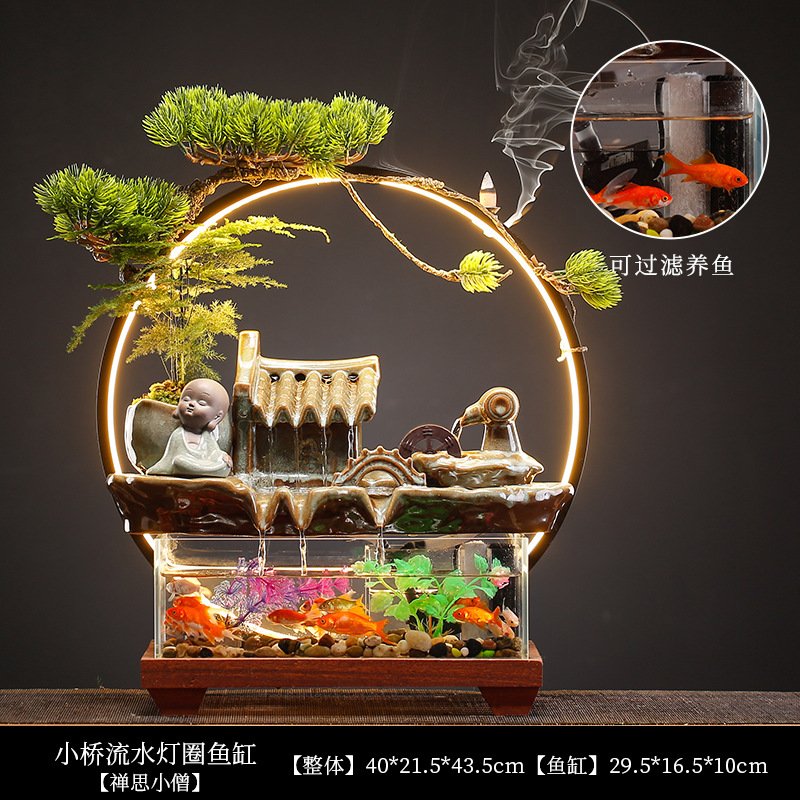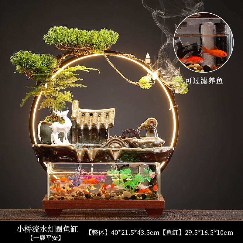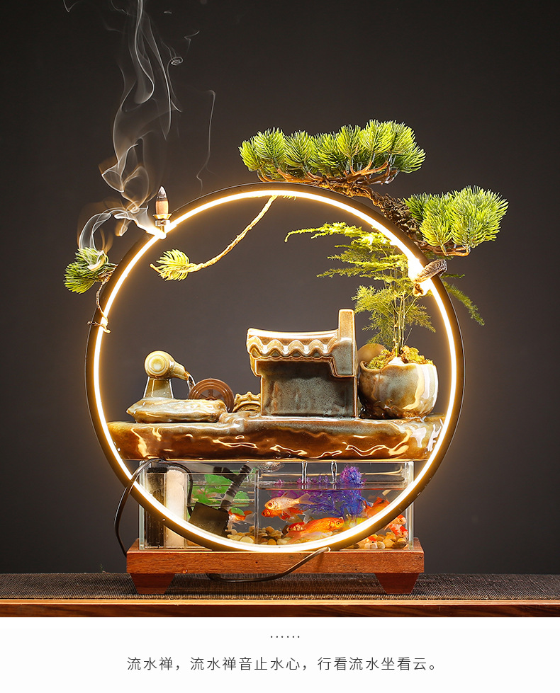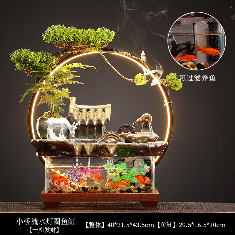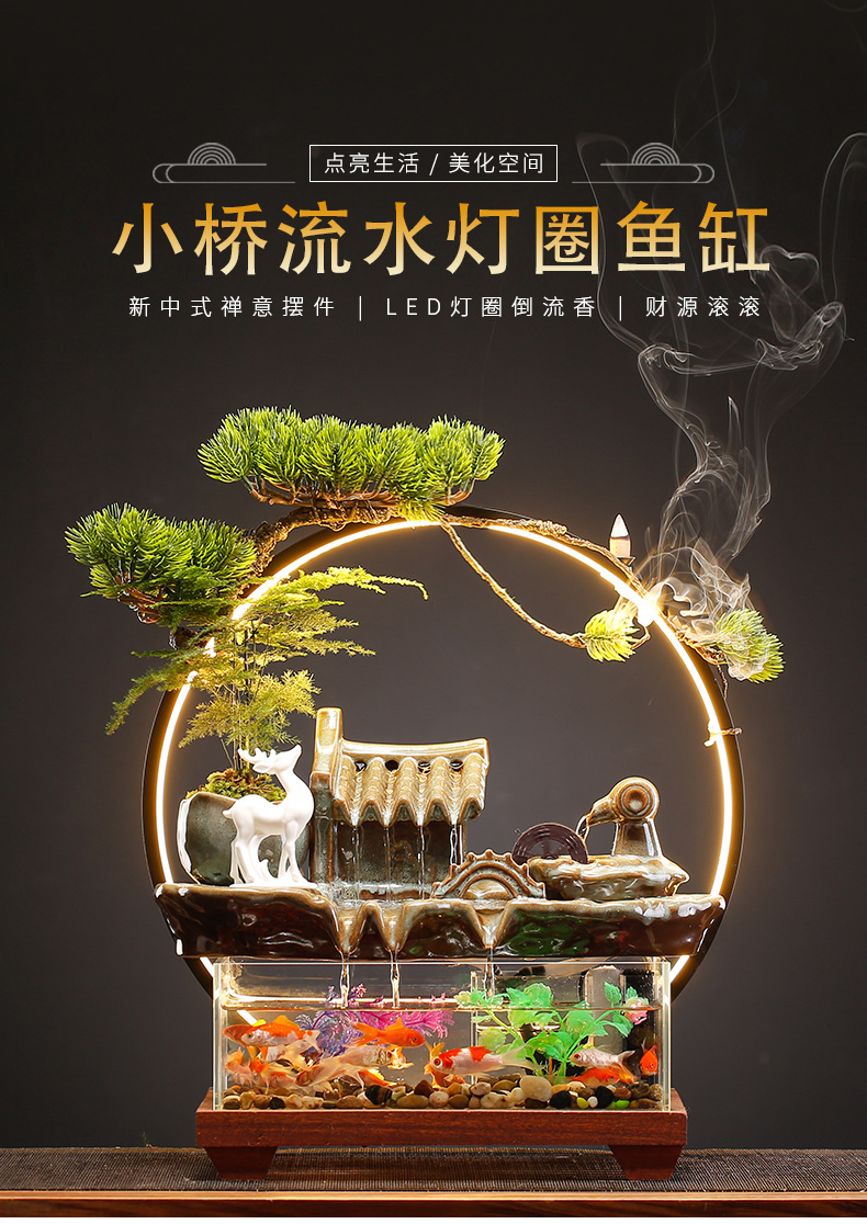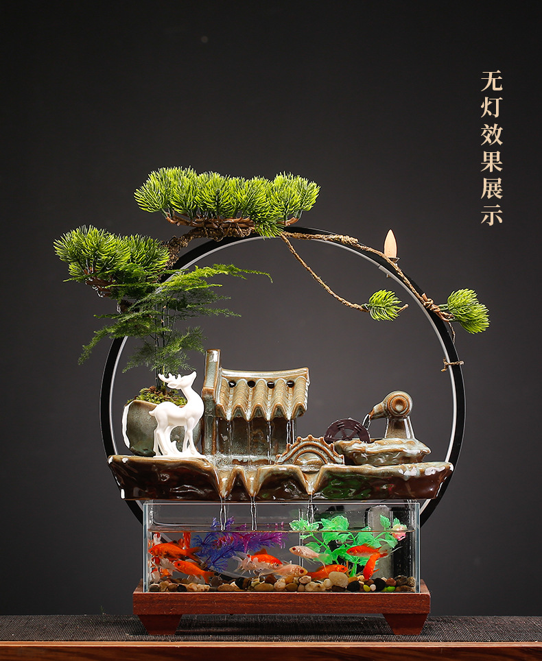 새로운 중국 스타일 유리 어항 행운의 물 장식 거실 사무실 데스크탑 TV 캐비닛 장식 사업 오프닝 선물