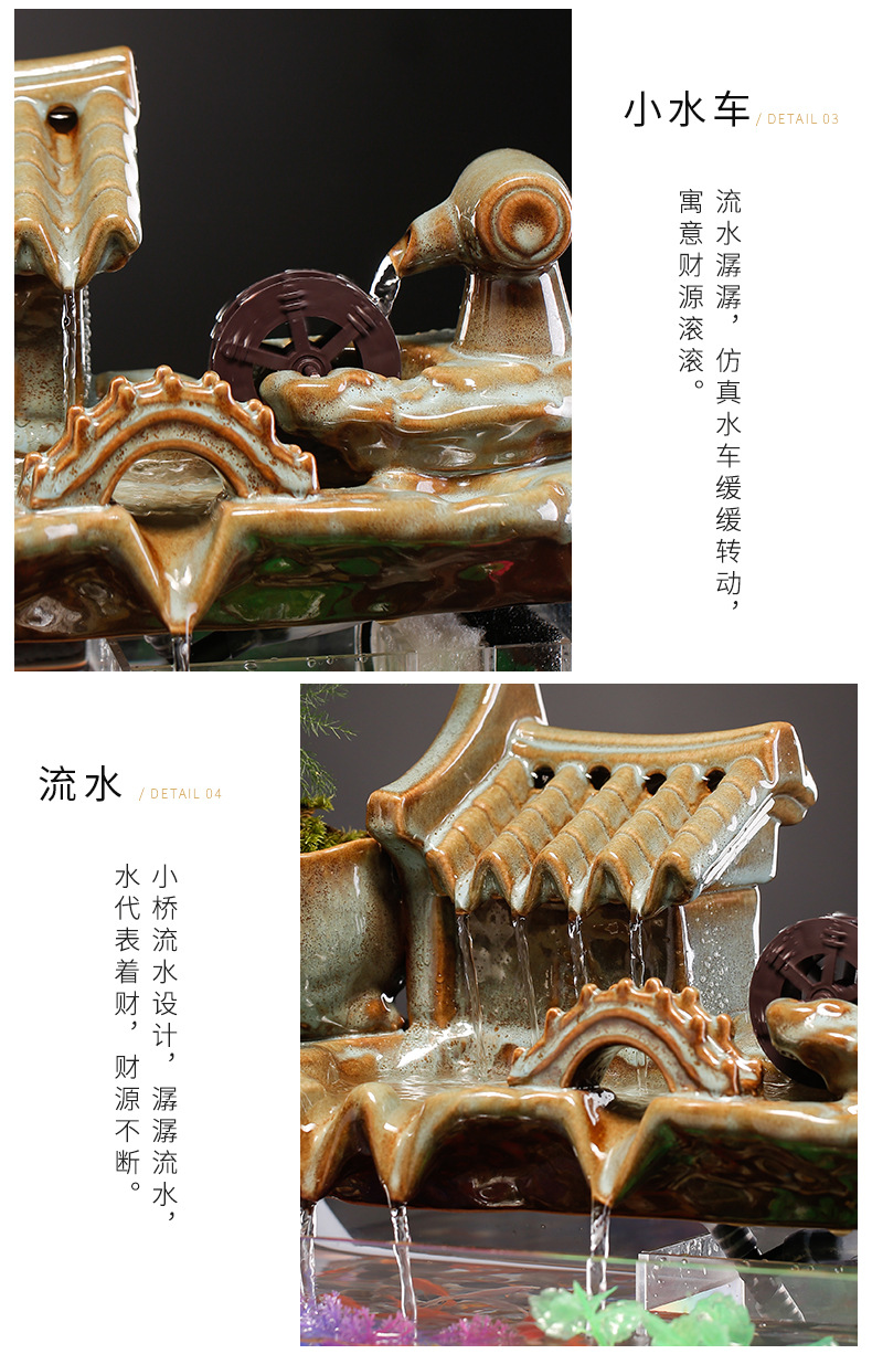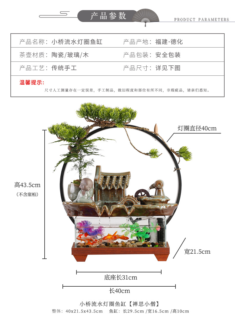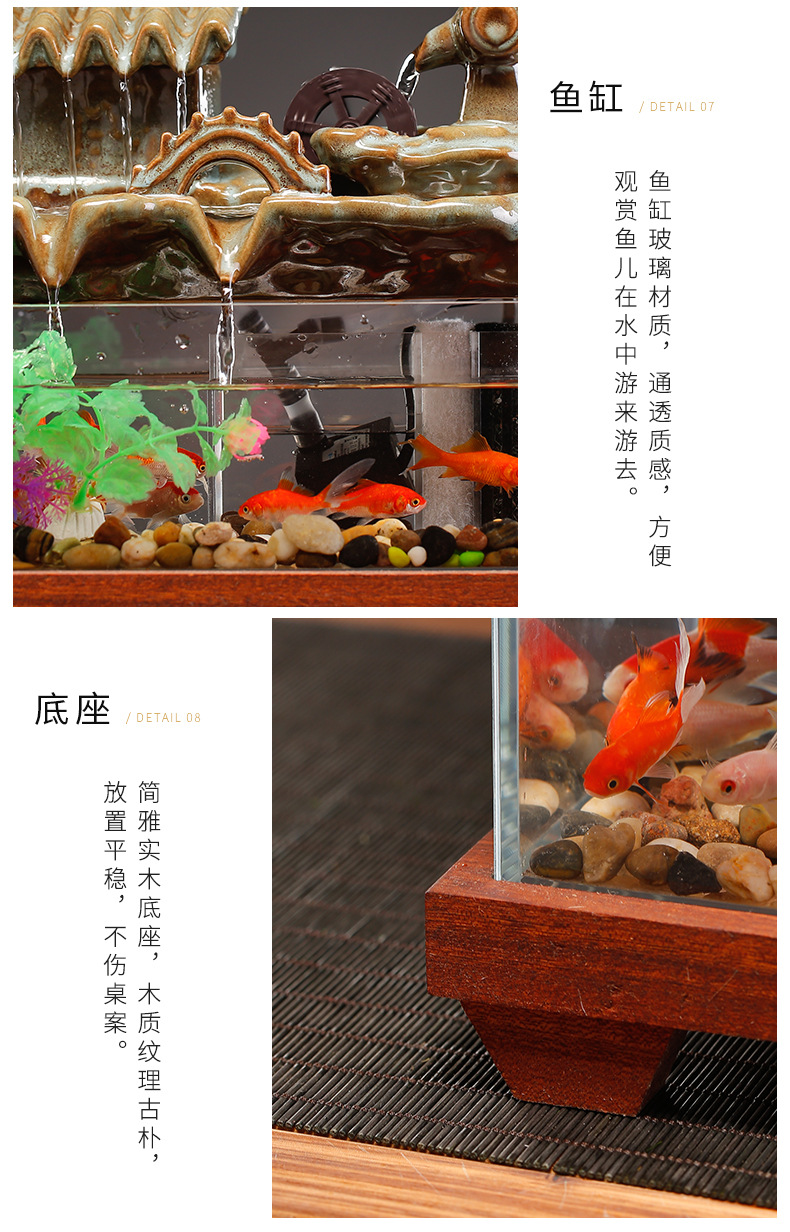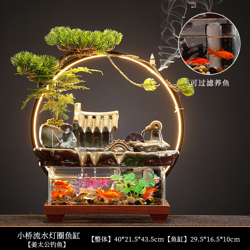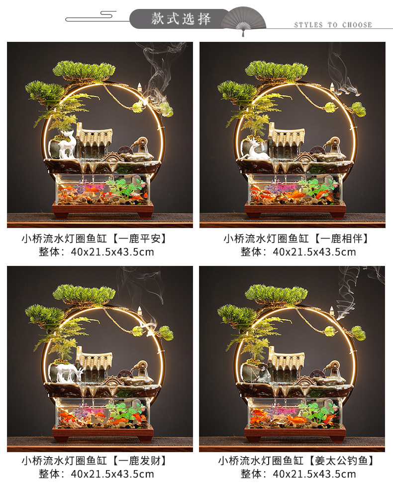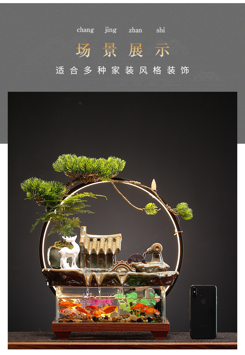 새로운 중국 스타일 유리 어항 행운의 물 장식 거실 사무실 데스크탑 TV 캐비닛 장식 사업 오프닝 선물
