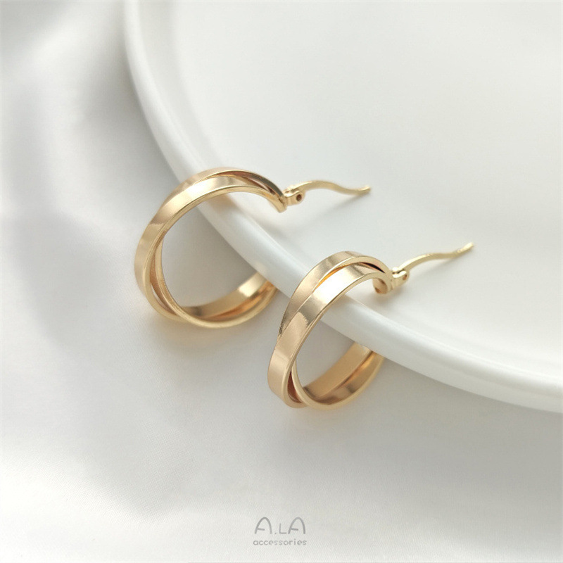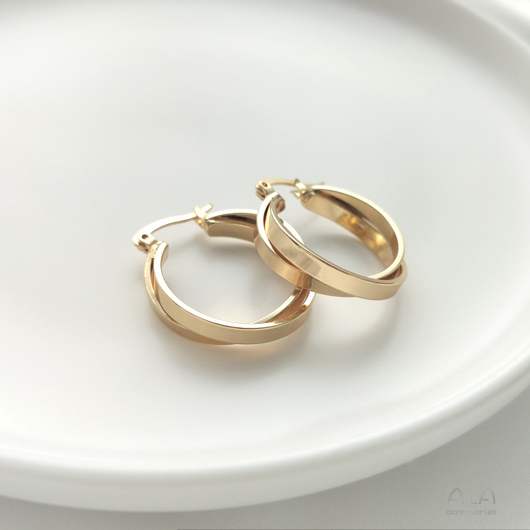 색상 유지 14K 골드 더블 링 크로스 이어 버클 미친 언니 첸 귀 반지와 높은 잎 Shuting 패션 귀걸이