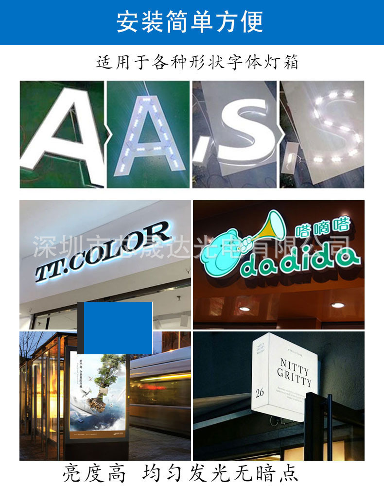 사출 성형 모듈 led2835 패치 12V 광고 발광 블리스 터 워드 모듈 하이라이트 cob 공기 필름 램프 모듈스토어 가기
