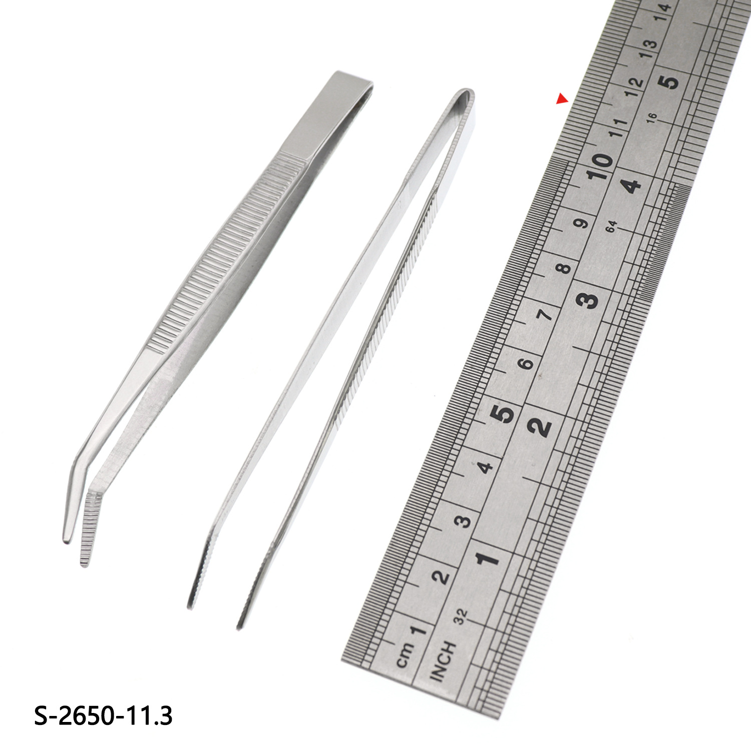 공장 공급 재고 cm/4.45 "스테인레스 스틸 핀셋 치아 팔꿈치 금속 핀셋 클립 배치