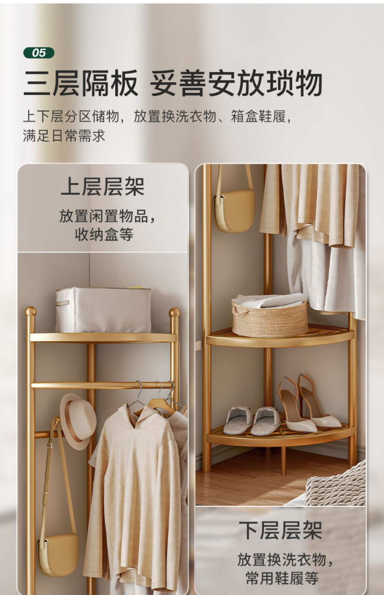 • ☆ 스틸 프레임 업그레이드 ☆ [라이트 럭셔리 골드] 수납 프레임이있는 코너 코트 랙