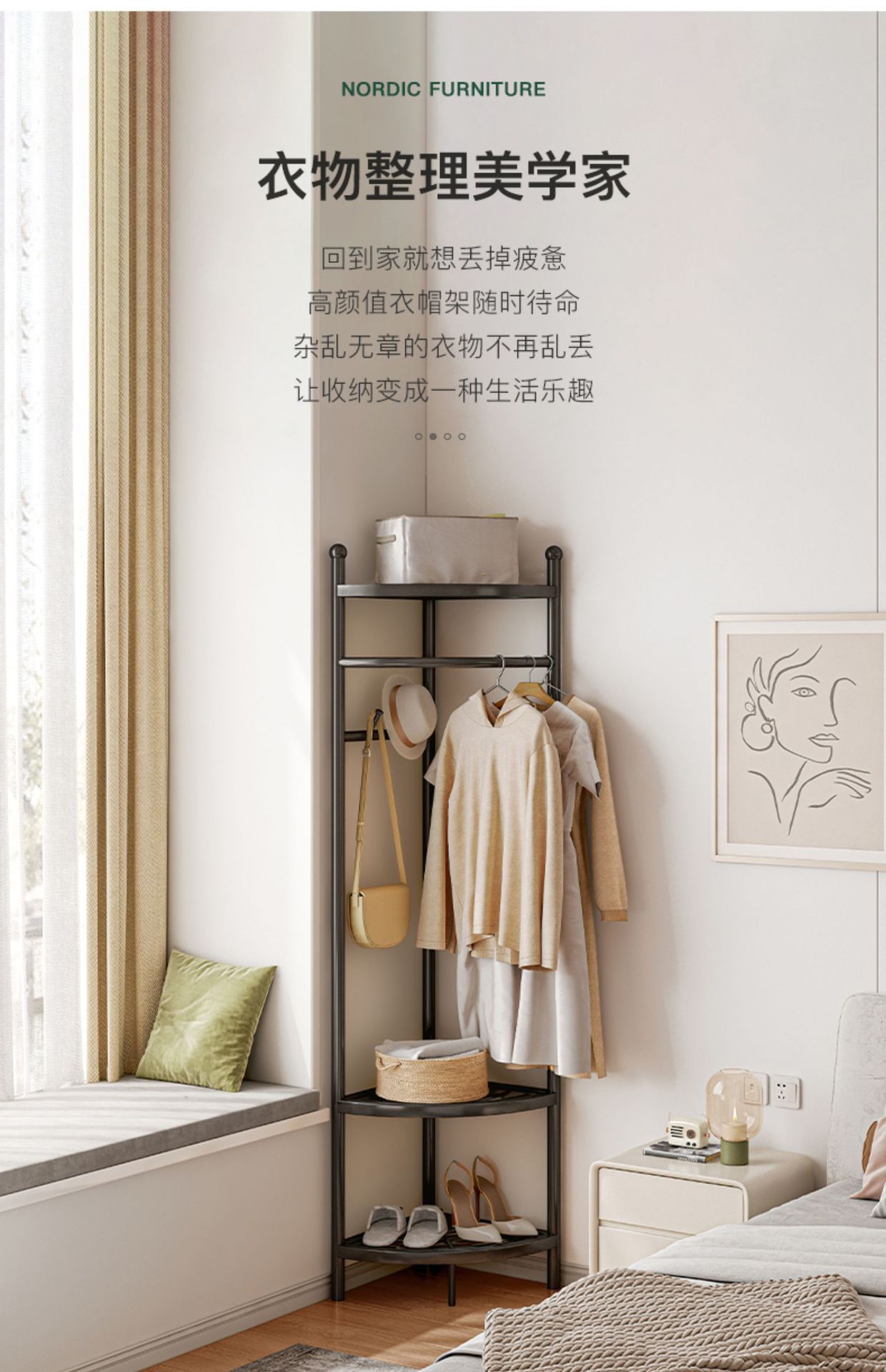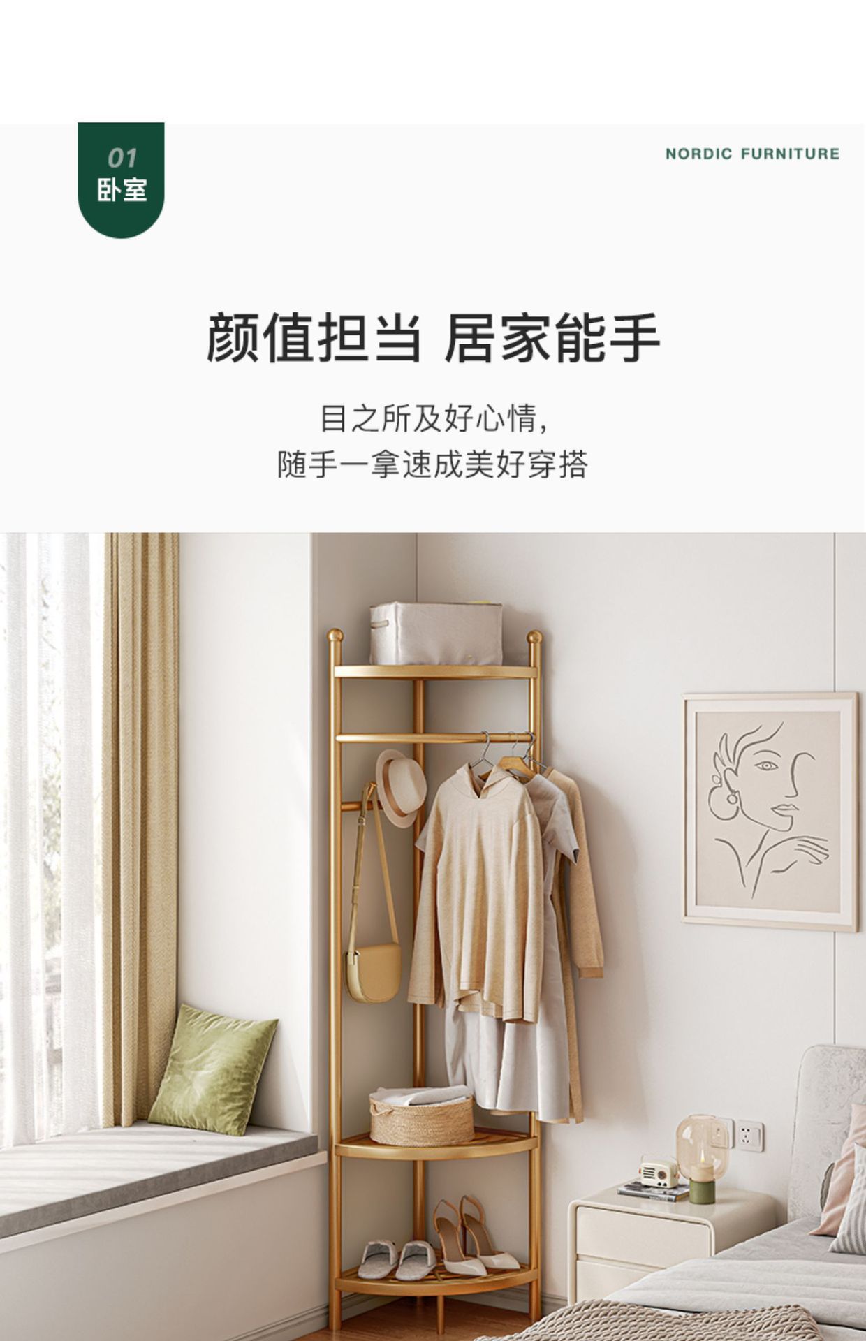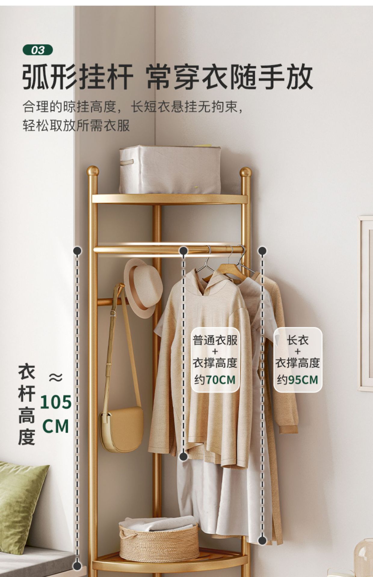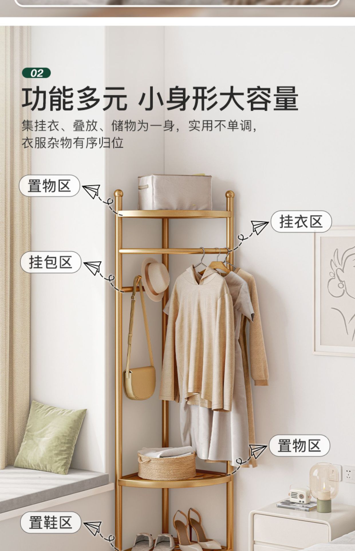 코너 걸이 플로어 스탠딩 침실 걸이 가정용 출입구 다기능 코트 랙 거실 조명 럭셔리 행잉 백 보관 랙