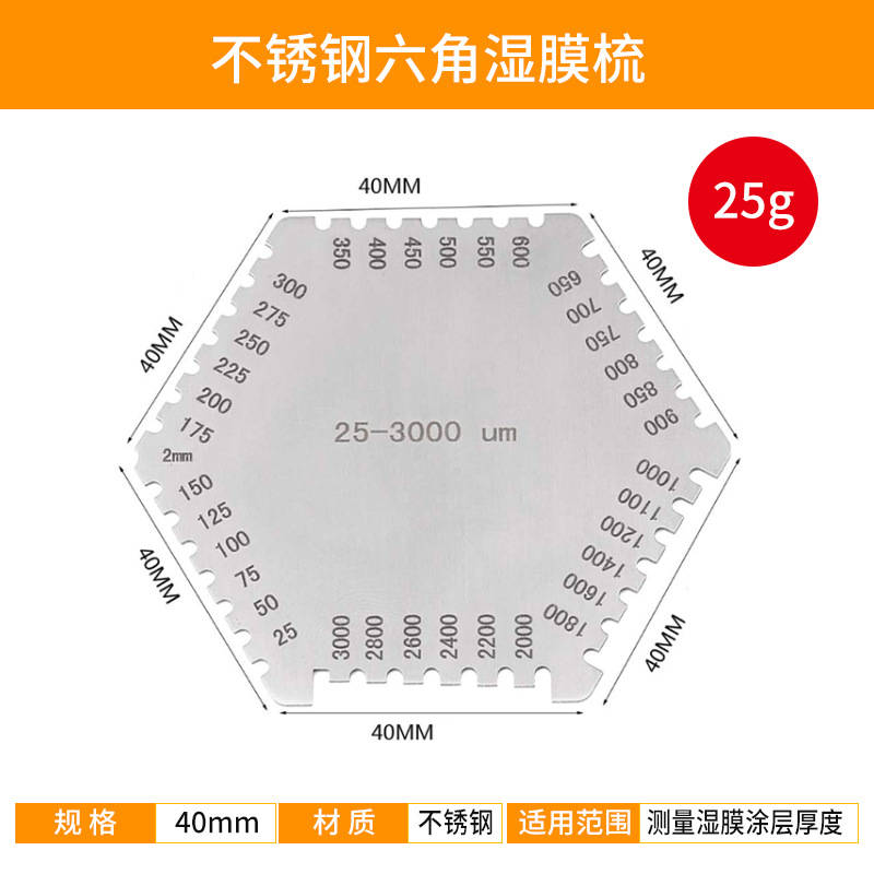 스테인레스 스틸 육각형 습식 필름 빗 페인트 습식 필름 두께 게이지 빗 게이지 습식 필름 카드 습식 필름 두께 게이지 장수명스토어 가기