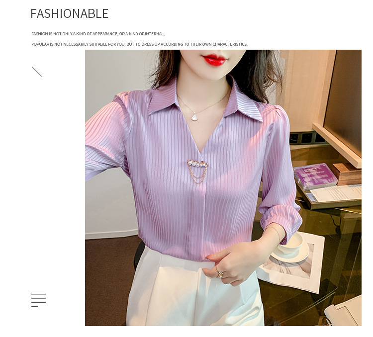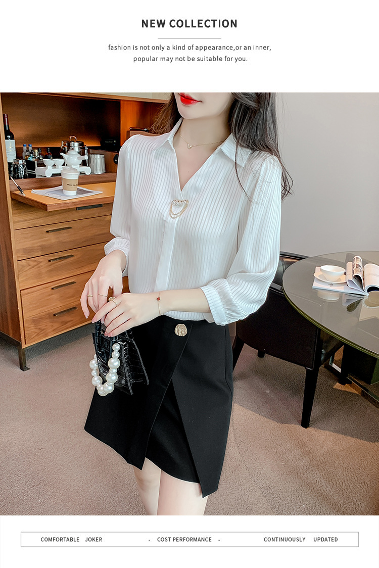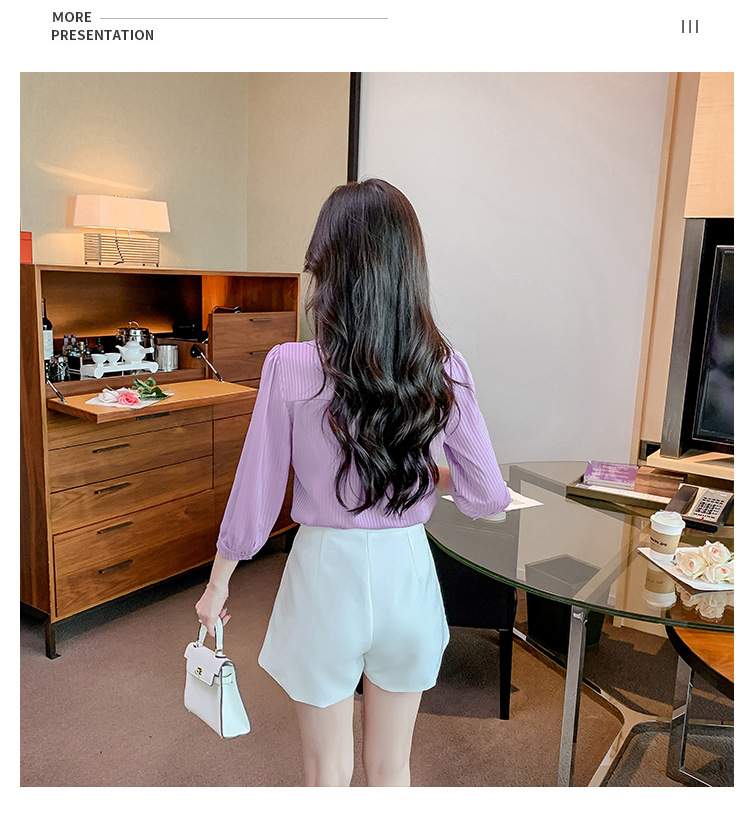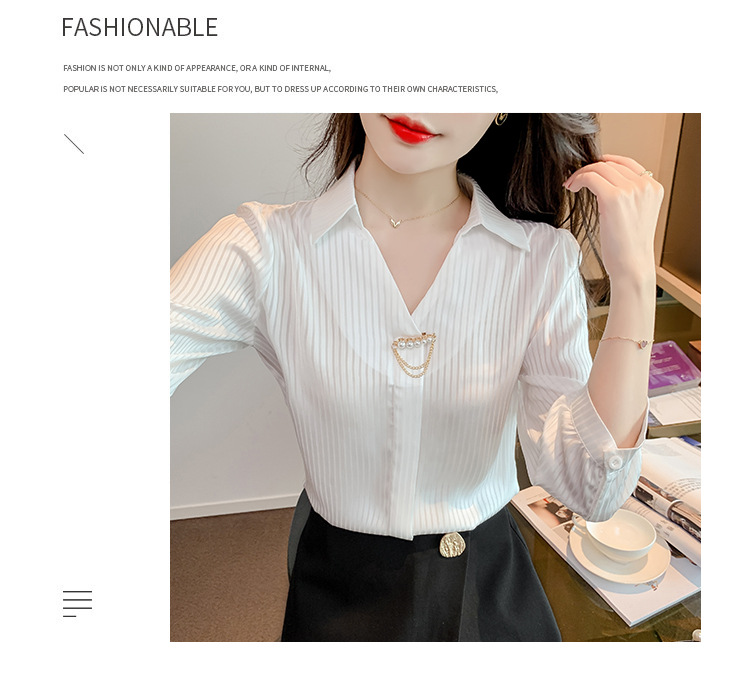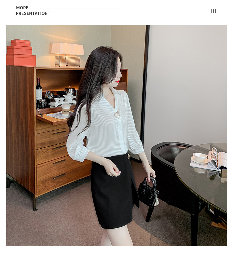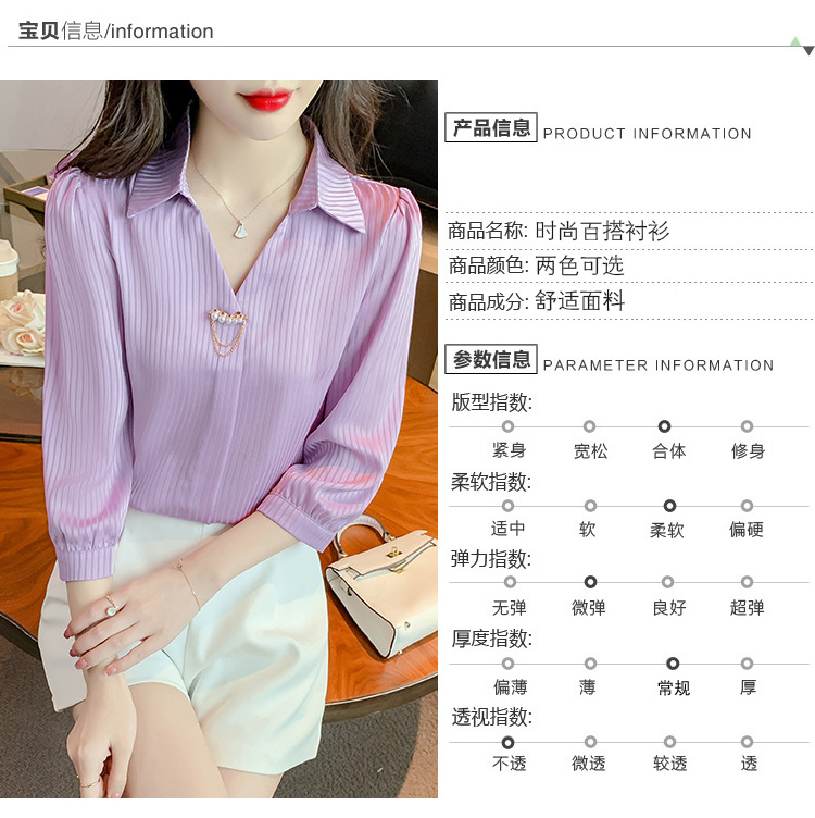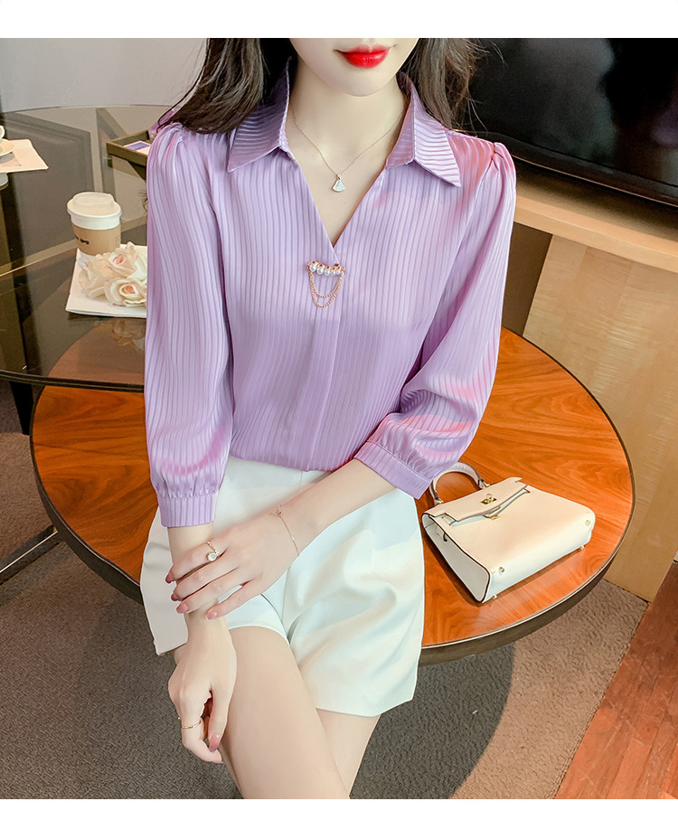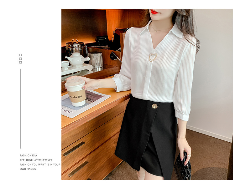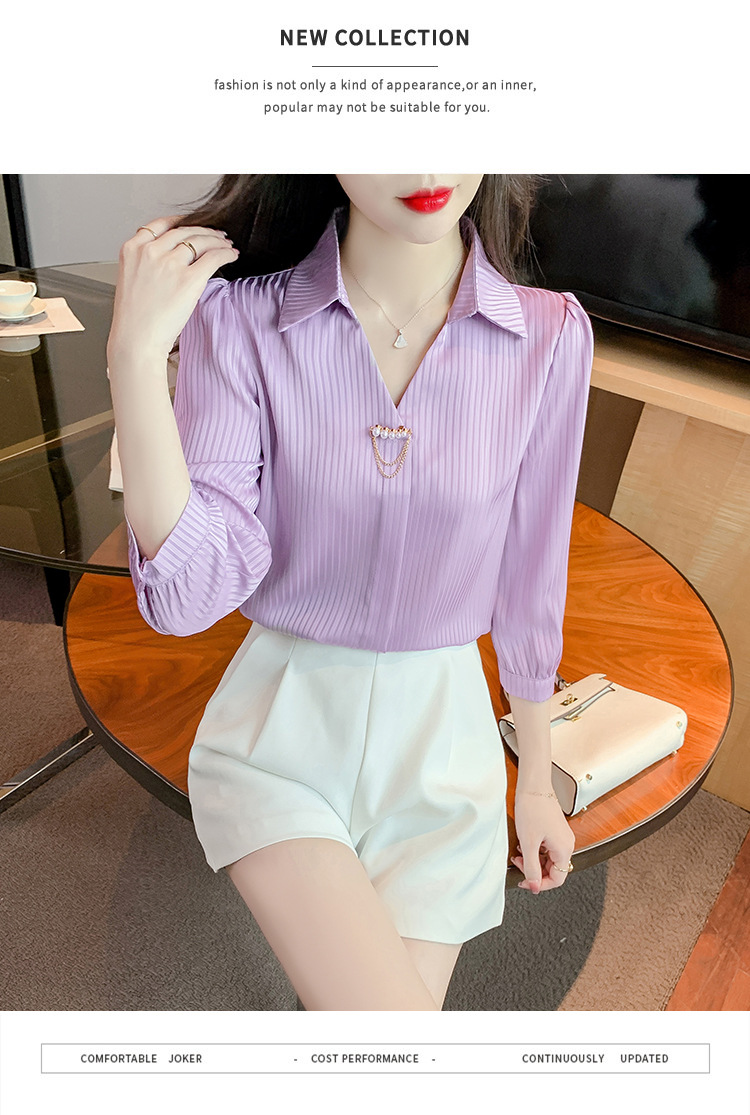 재고 2023 봄 뉴 스위트 브이넥 세븐슬리브 셔츠 여성용 디자인 센스 올매치 쉬폰 다크 패턴 탑 트렌디스토어 가기