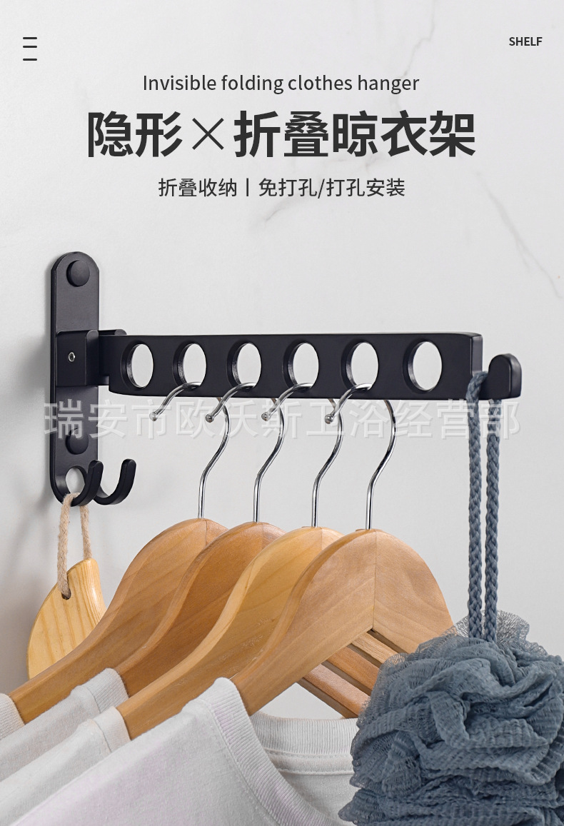펀치가없는 공간 알루미늄 발코니 화장실 보이지 않는 접이식 옷 건조 유물 기숙사 실내 망원경 옷걸이