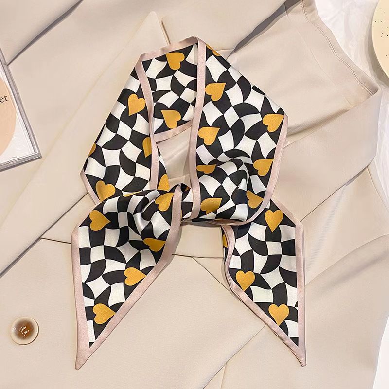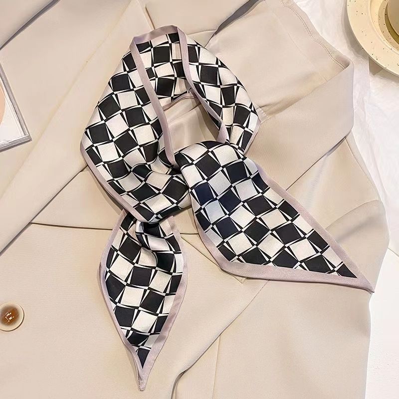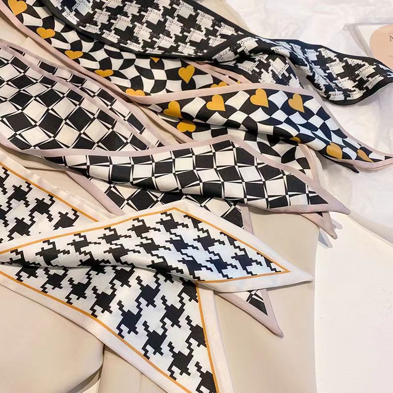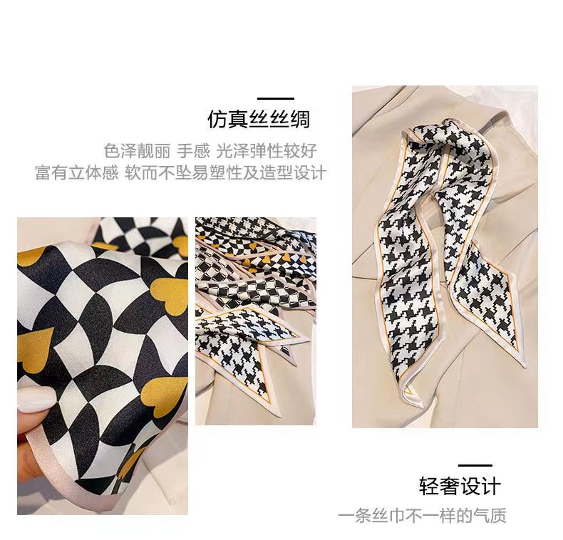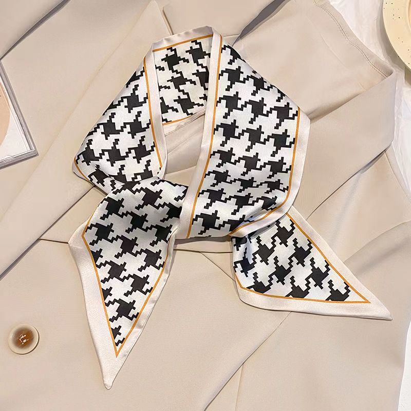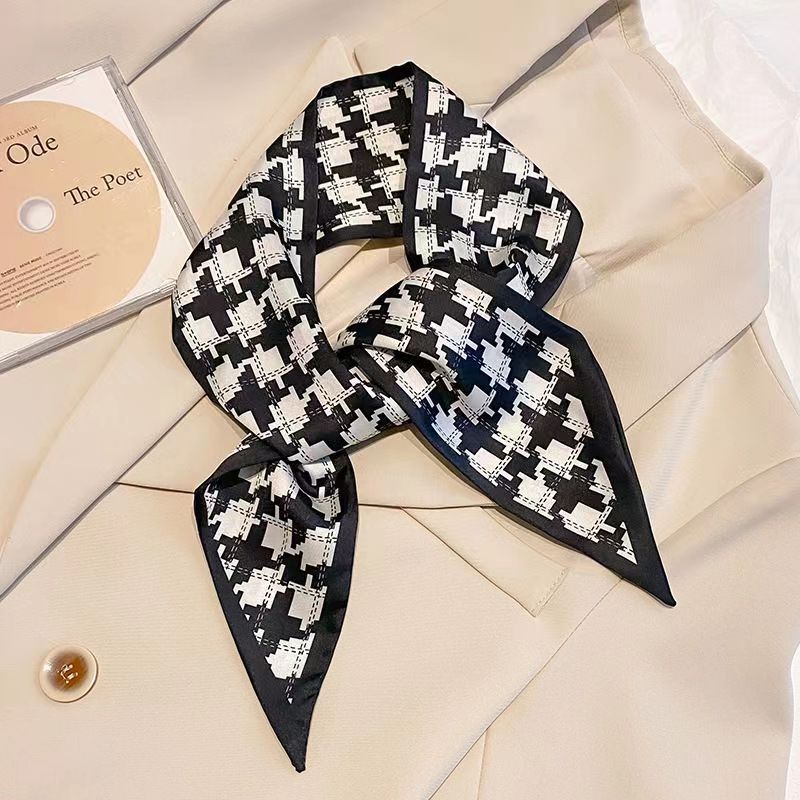 Houndstooth 작은 스카프 새로운 한국 스타일 패션 모조 실크 스카프 넥타이 가방 장식 헤어 밴드 스카프 긴 리본