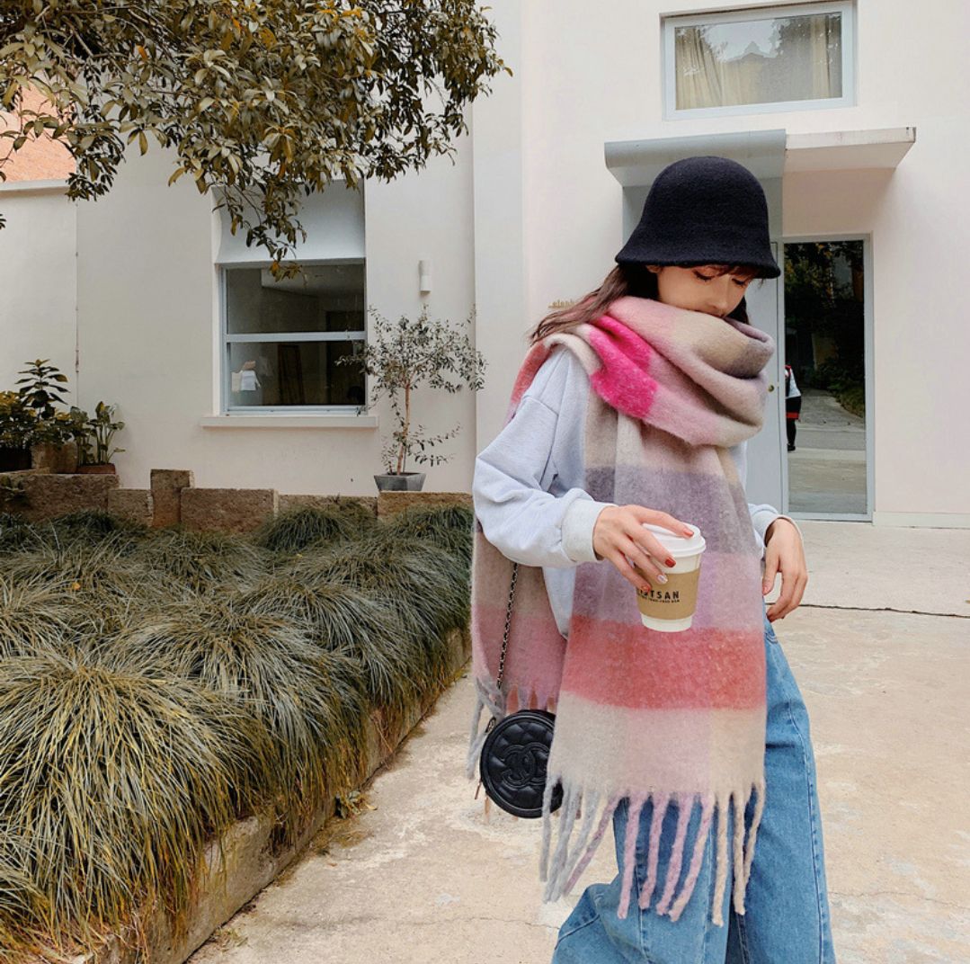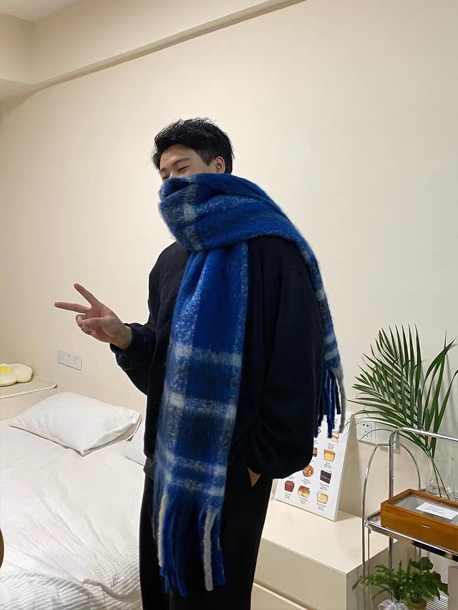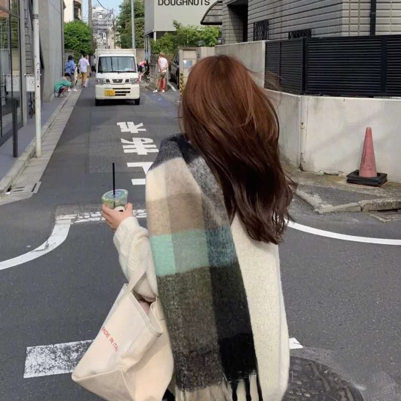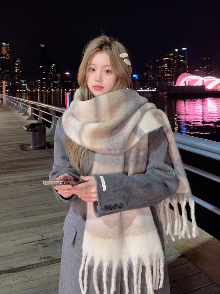 솔리드 컬러 스카프 겨울 여성 하이 센스 2025 새로운 모헤어 흑백 격자 무늬 학생 따뜻한 두꺼운 스카프스토어 가기