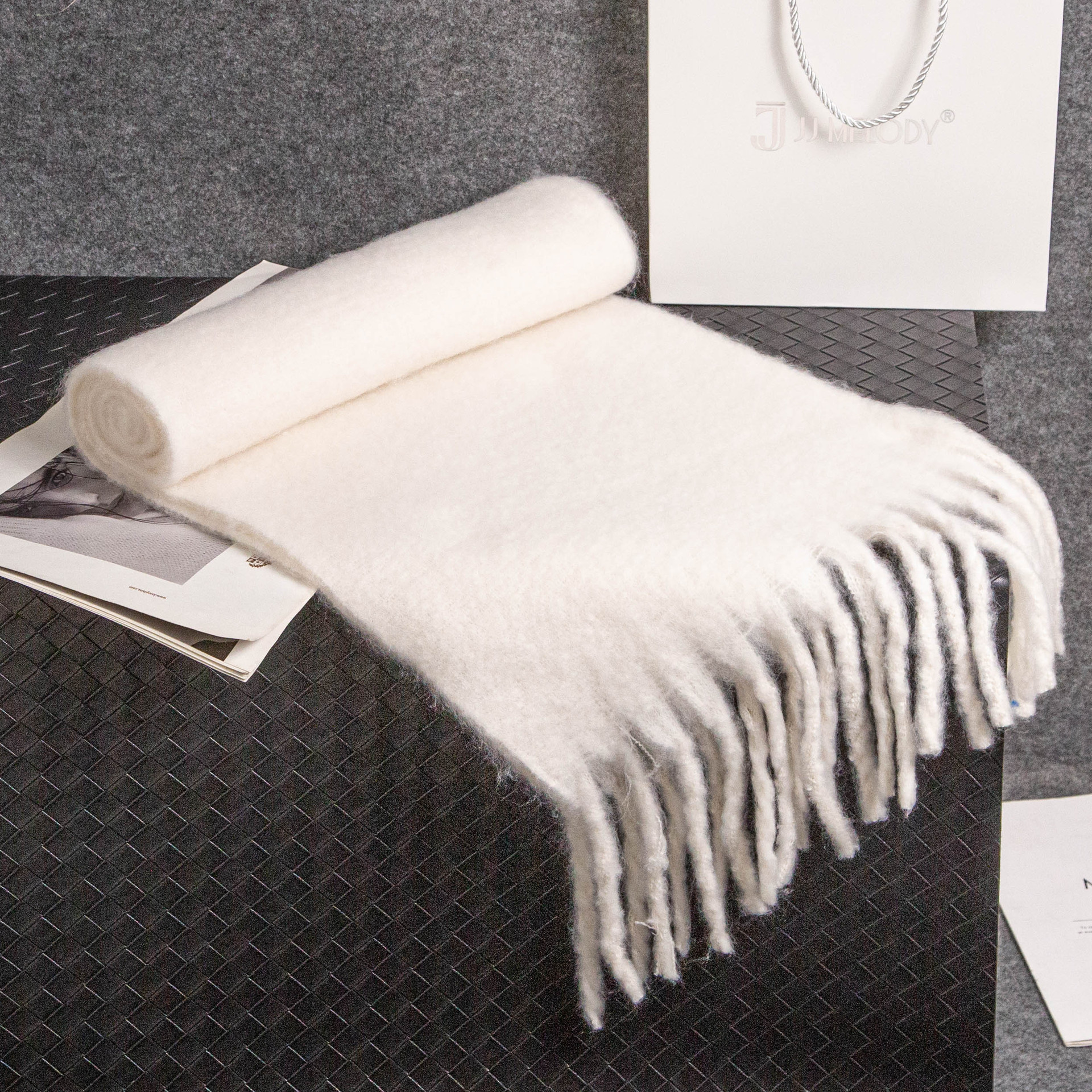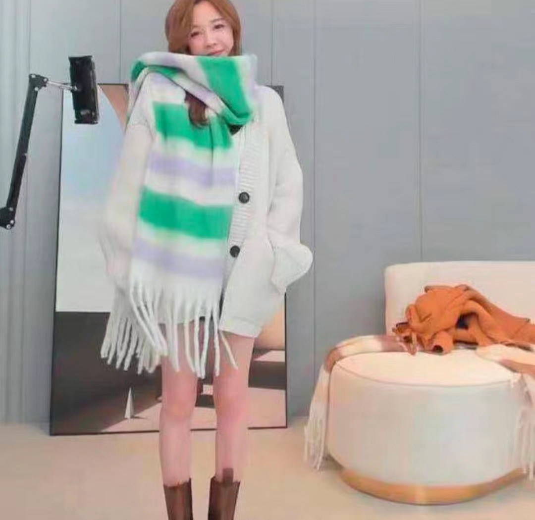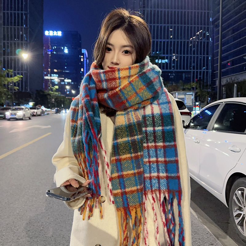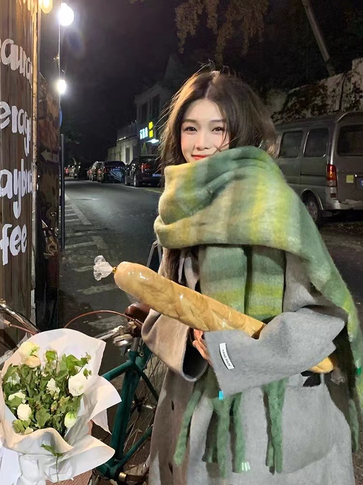 솔리드 컬러 스카프 겨울 여성 하이 센스 2025 새로운 모헤어 흑백 격자 무늬 학생 따뜻한 두꺼운 스카프스토어 가기
