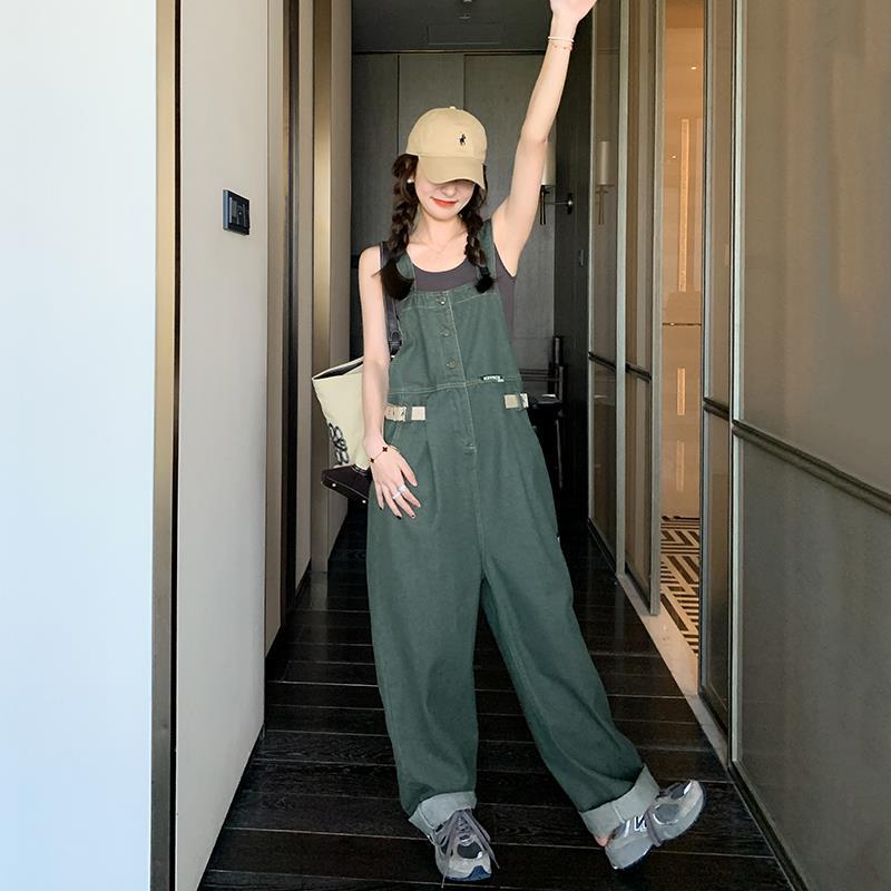 리얼 샷 디자인 센스 틈새 툴링 데님 스트랩 팬츠 여자 23 여름 올매치 루즈 캐주얼 스티칭 와이드 레그 팬츠스토어 가기