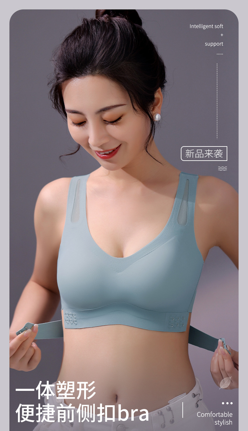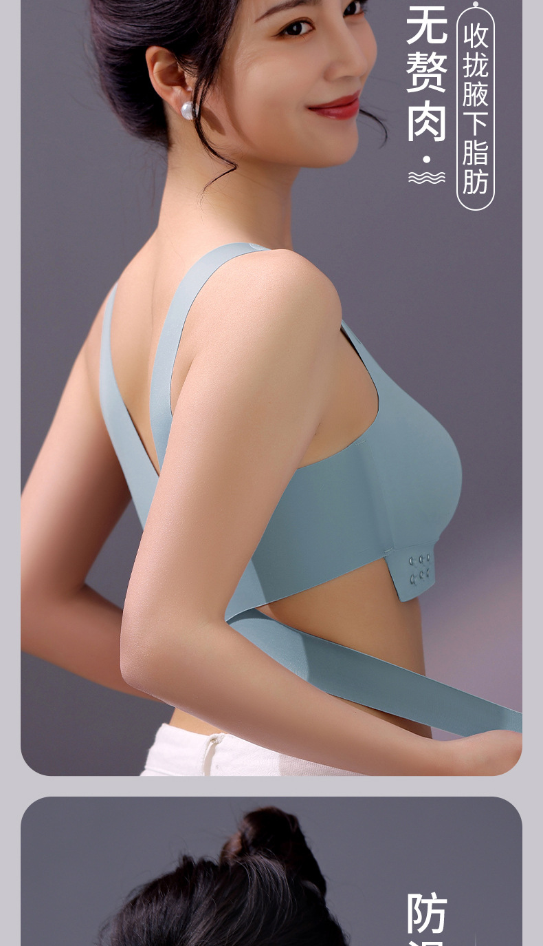 원활한 속옷 여성의 여름 얇은 큰 가슴 작은 가슴 앞 버클 크로스 아름다운 등 스포츠 조끼 스타일 브래지어 여름스토어 가기