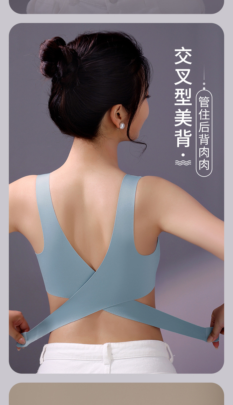 원활한 속옷 여성의 여름 얇은 큰 가슴 작은 가슴 앞 버클 크로스 아름다운 등 스포츠 조끼 스타일 브래지어 여름