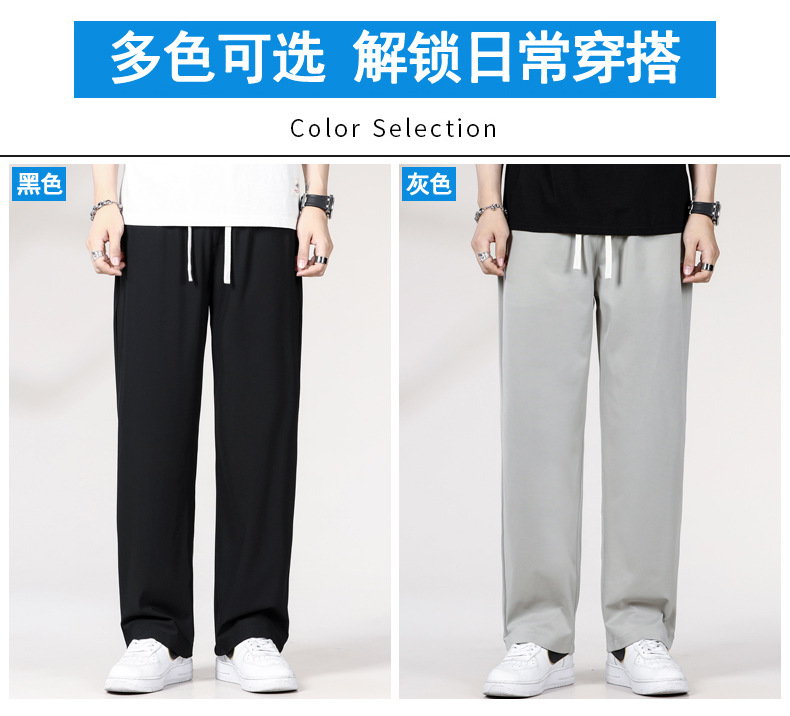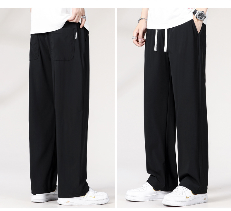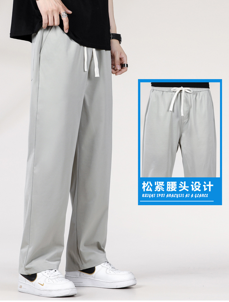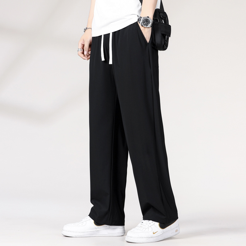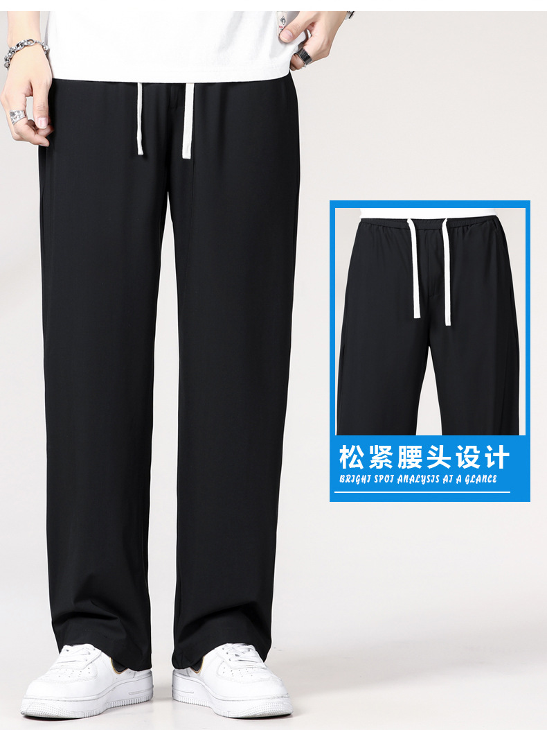 플러스 사이즈 남자의 여름 새로운 아이스 실크 와이드 레그 아빠 바지 느슨한 플러스 사이즈 간단한 졸라매는 끈 얇은 캐주얼 바지 남성용